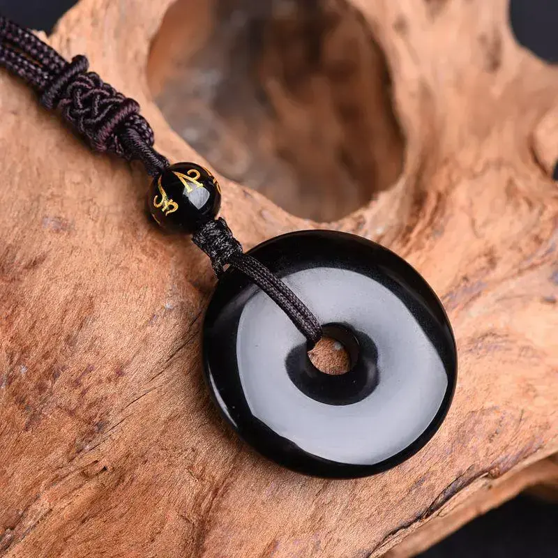 35MM Black Obsidian Round Buckle Natural Crystal Pendant Healing Reiki Amulet Protection Lucky Necklace Mother's day Gift