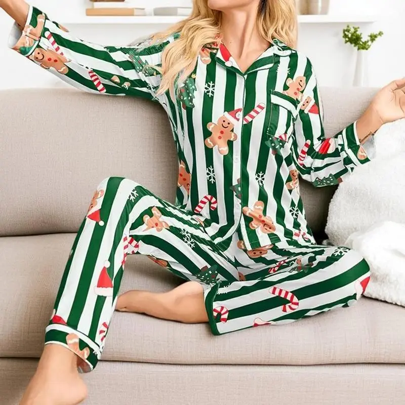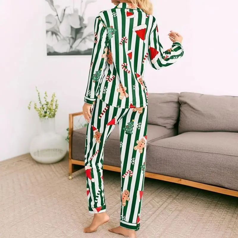 Christmas Pajamas for Women, Festive Gingerbread & Candy Cane Striped Pajama Set, Cozy Holiday Sleepwear for Christmas Morning and Lounging