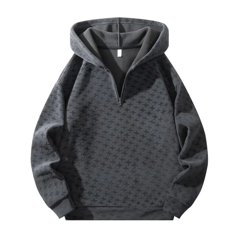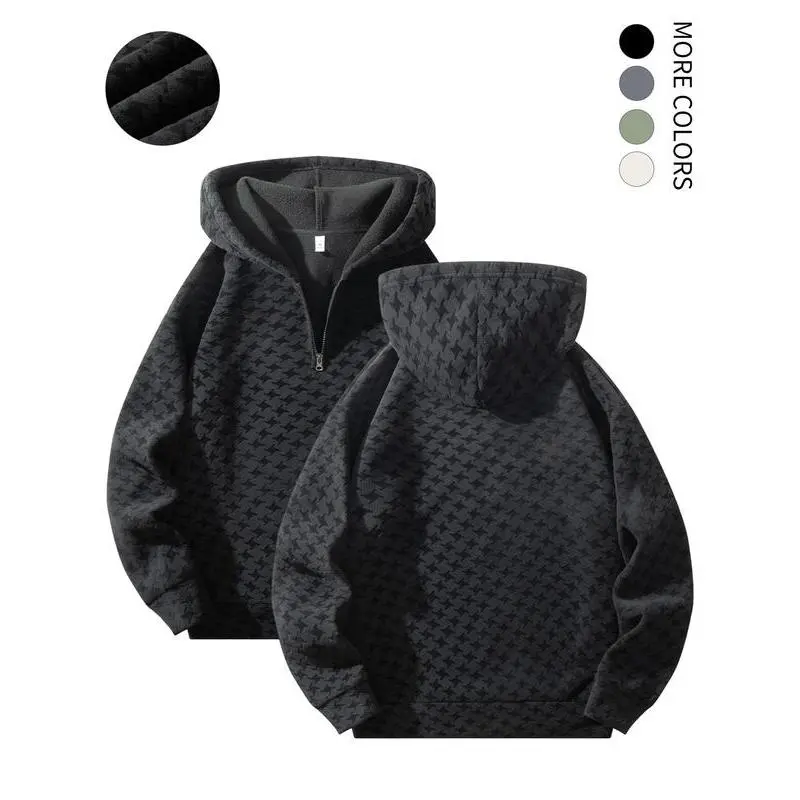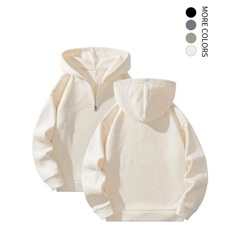 【Half-Zip Feature】: The half-zip design provides easy ventilation and allows for adjusted coverage, enhancing versatility. 【Fleece Material】: Crafted from soft fleece, this garment offers a warm, inviting feel while ensuring breathability. 【Moderate Fabric Thickness】: With its moderate thickness, this piece balances warmth and breathability, making it suitable for transitional weather. 【Fitted Cut】: The fitted silhouette ensures a neat appearance, enhancing your look whether you're lounging or out. 【Hooded Design】: Equipped with a hood, this garment provides extra warmth and protection against chilly winds during outdoor activities.