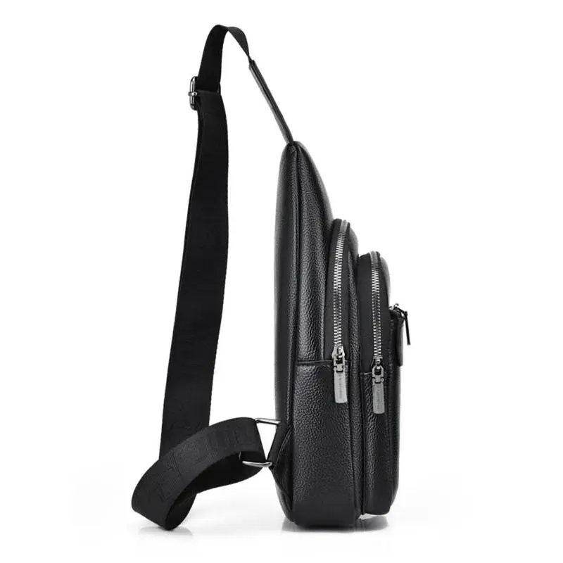 Large Capacity Soft PU Leather Chest Bag with Adjustable Shoulder Strap, Comfortable Casual Style for All Seasons, Multiple Zipper Compartments for Easy Organization