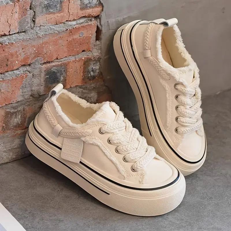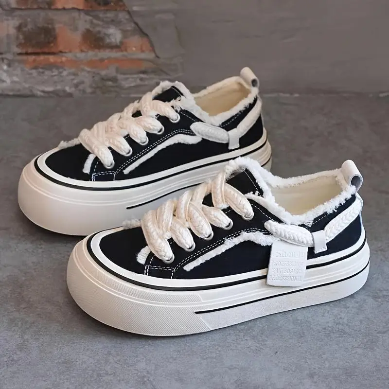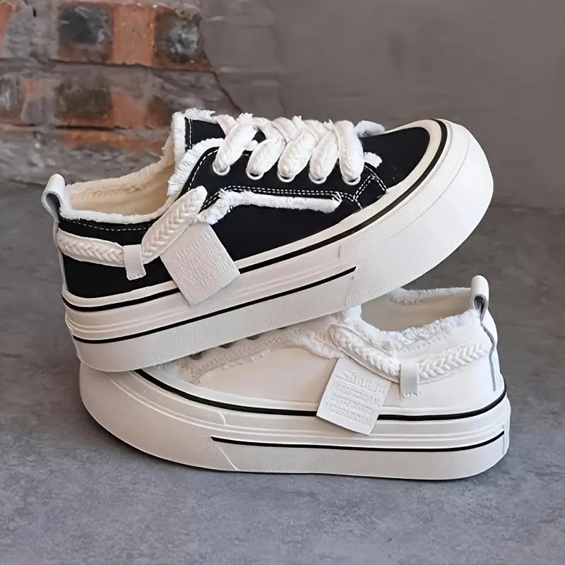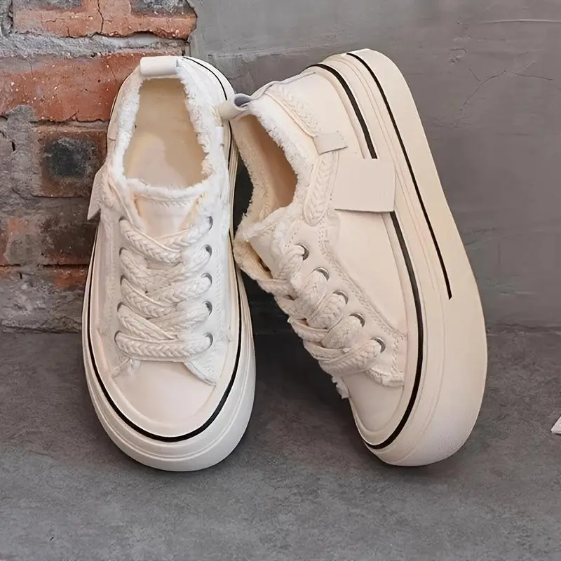 Blair- Women's retro Thick-Soled Platform Sneakers - white Lace-Up Casual Shoes,plaid Four Seasons Rubber Bottom