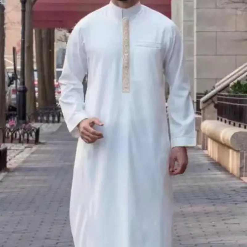 Retro Men's Clothing [Elegant Burgundy Kaftan] Burgundy Embroidered Kaftan - Men's Elegant Long Sleeve, Polyester Blend, Fish Scale Pattern, Stand Collar, Perfect for Ramadan and Eid al-Fitr Celebrations, Muslim Clothes