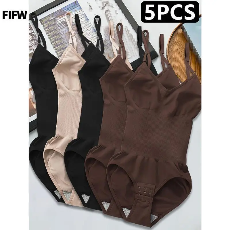 5-Piece Seamless Shapewear Bodysuit for Women with Abdominal Compression Hip Lift Function - Tummy Control, No Padding, Stretch Nylon Spandex Blend Fabric, Black/Brown/White/Beige/Navy Blue, Suitable for Travel Casual Wear, Comfortable Underwear and