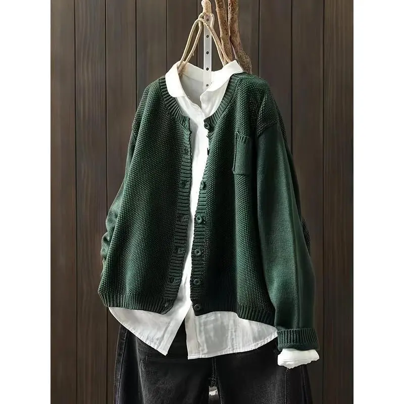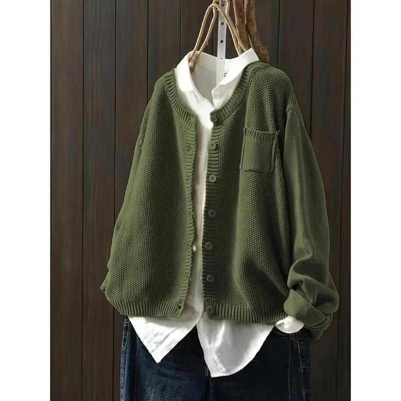 DurableStyle)Women'sOliveGreenCasualKnitCardigan-LooseFitLongSleeveSweaterJacketwithButtonsandPockets|AutumnWinterComfortableAcrylicOversizedSweater