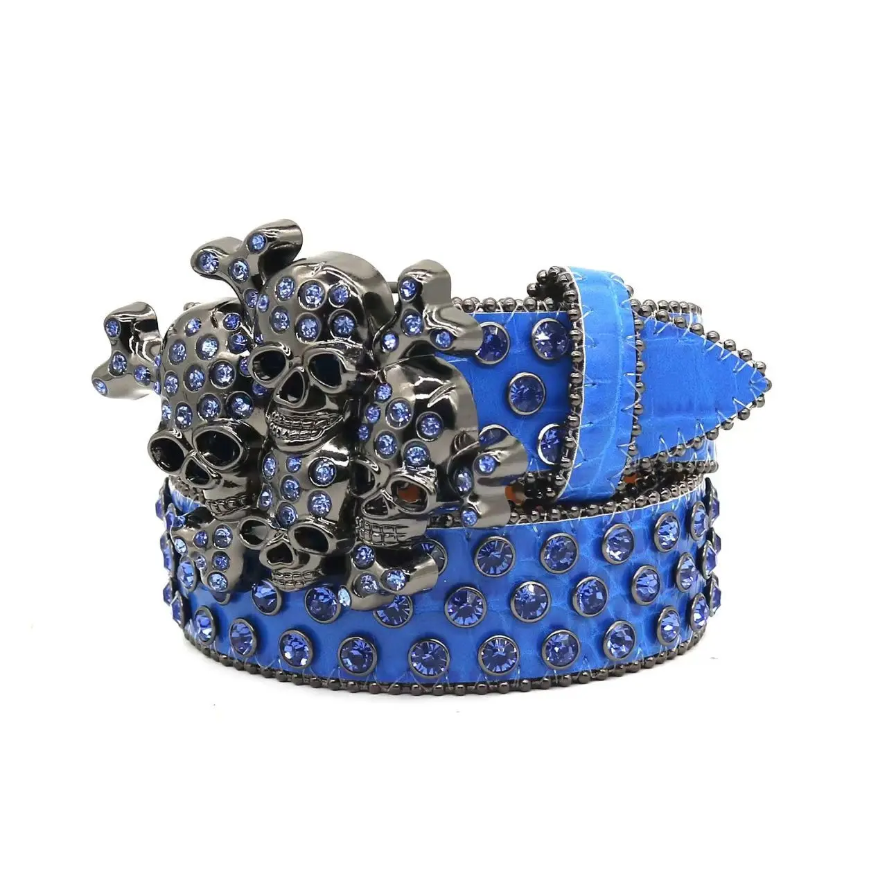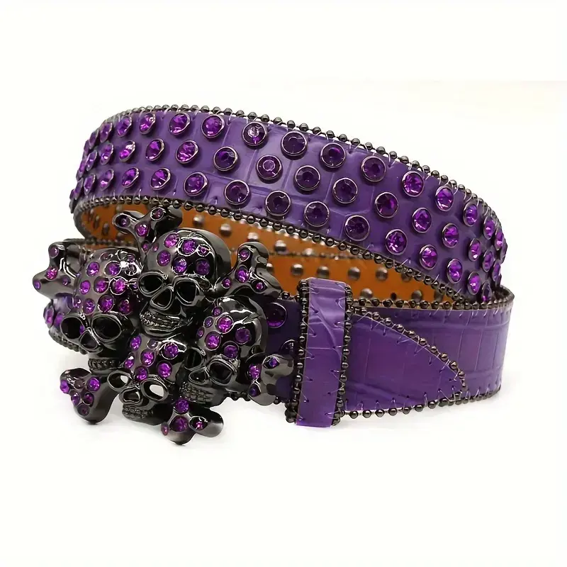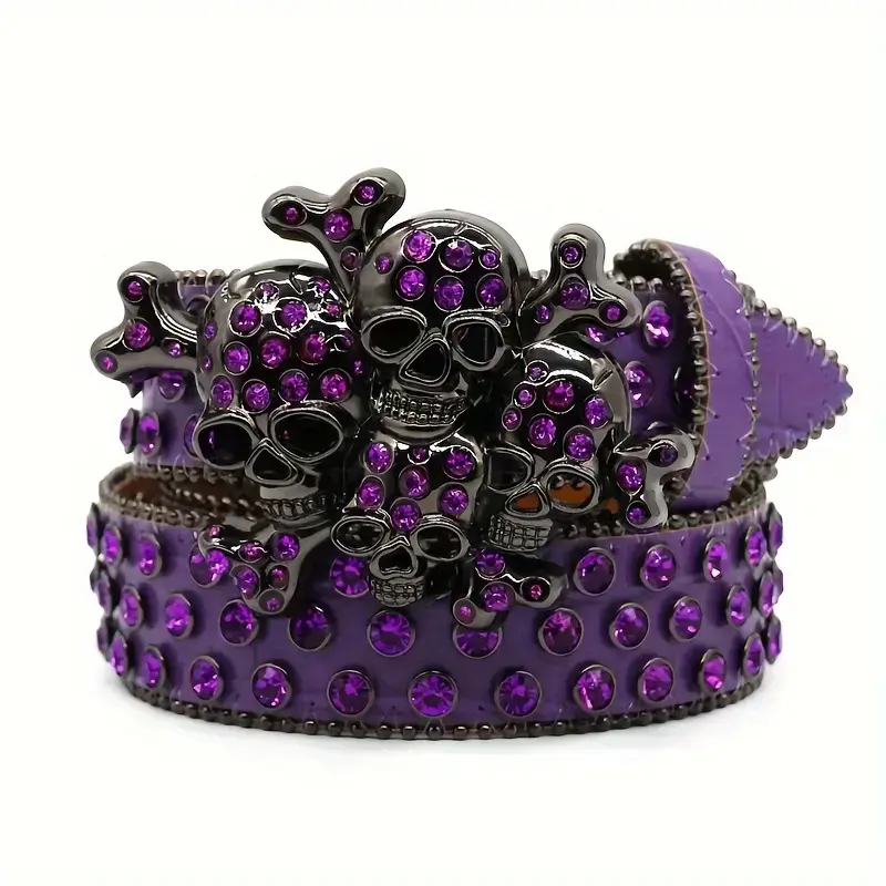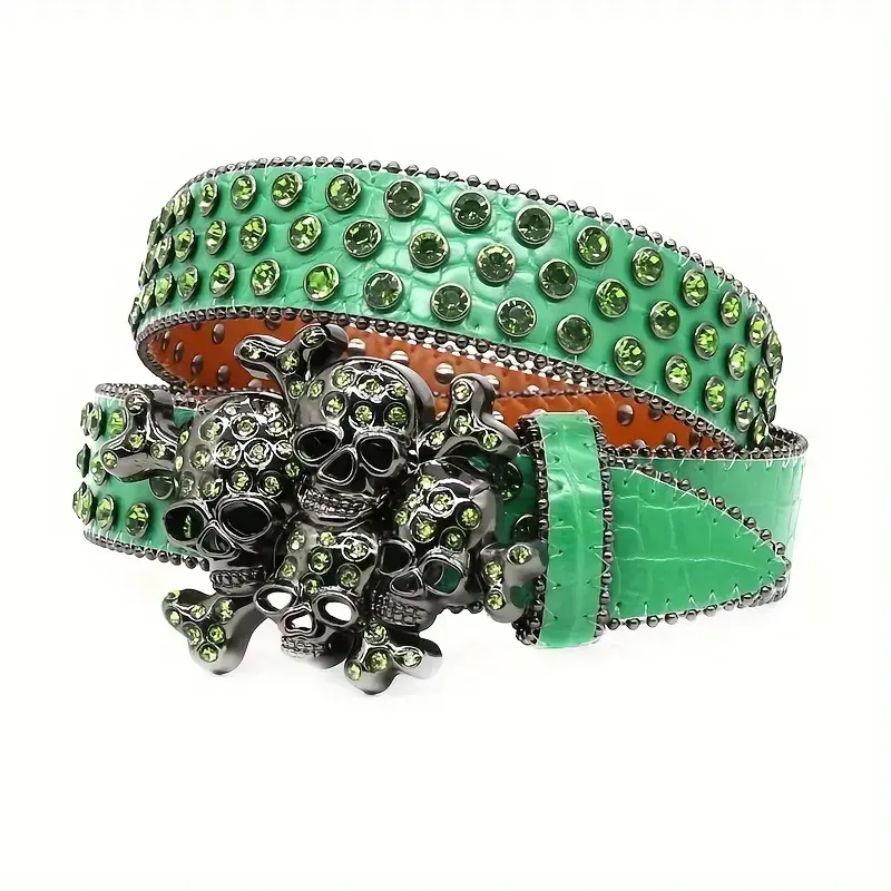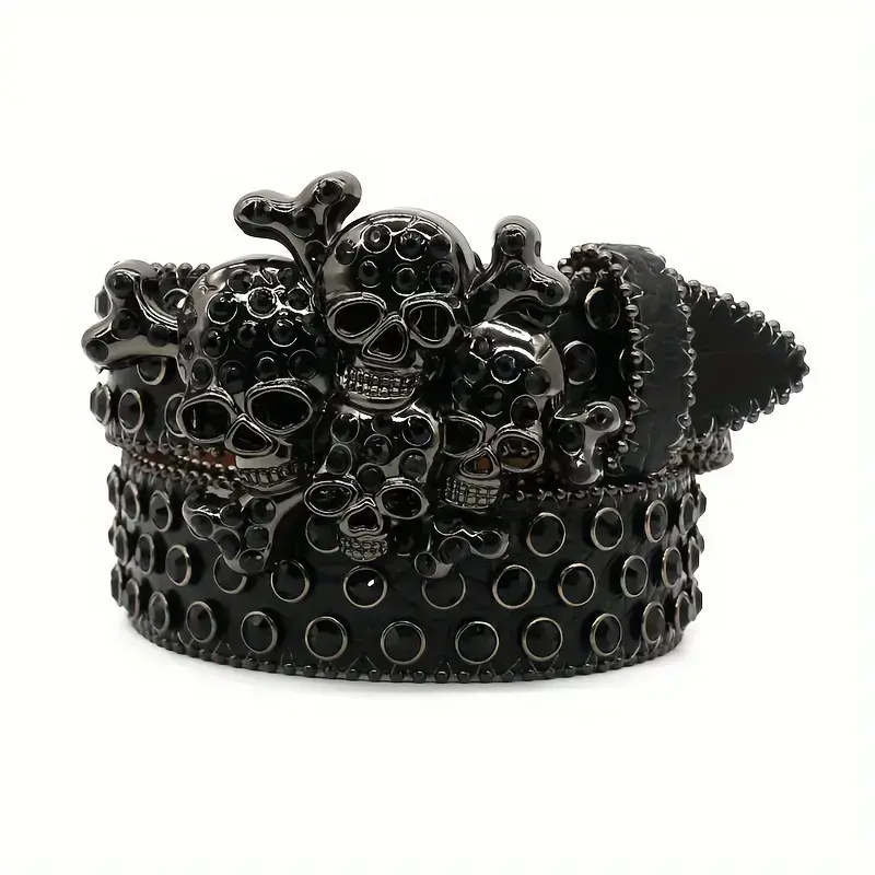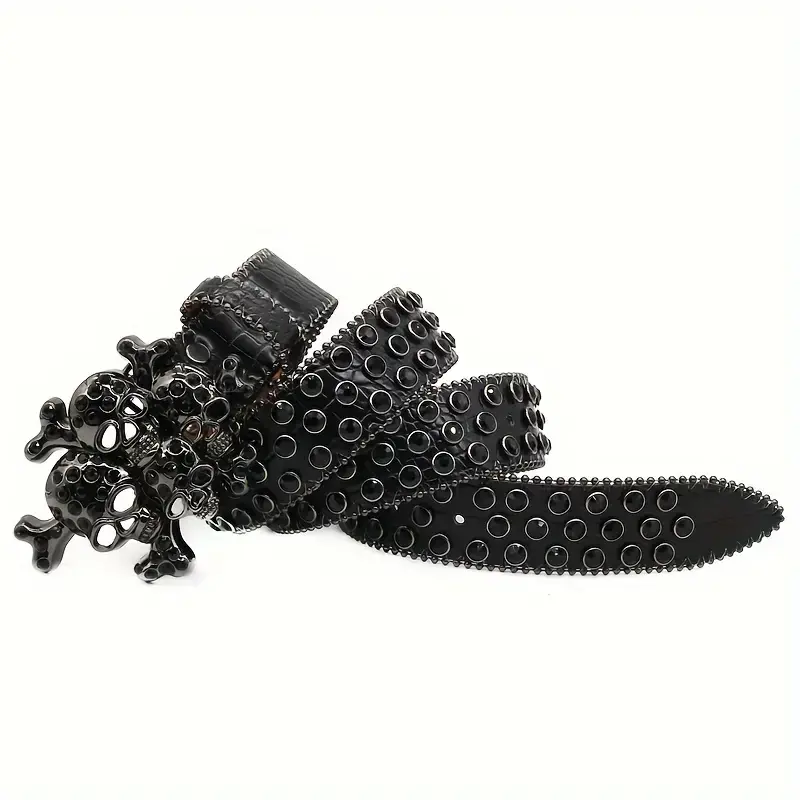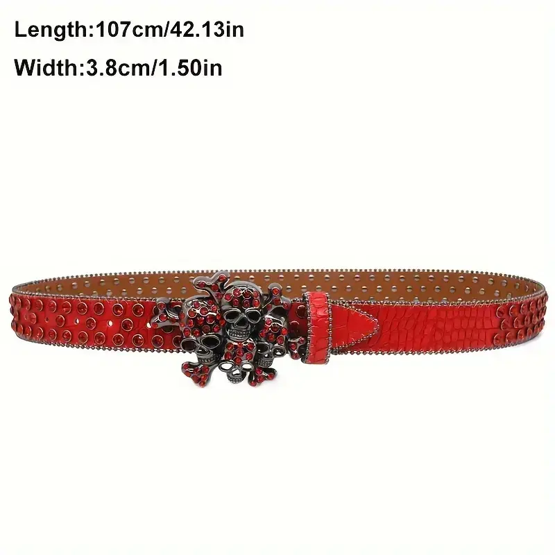 Street Style Punk Skull Studded Belt with Rhinesnes, UniGender Hip Hop Fashion Decorative Belt, PU Leather with Alloy Buckle - 1Count