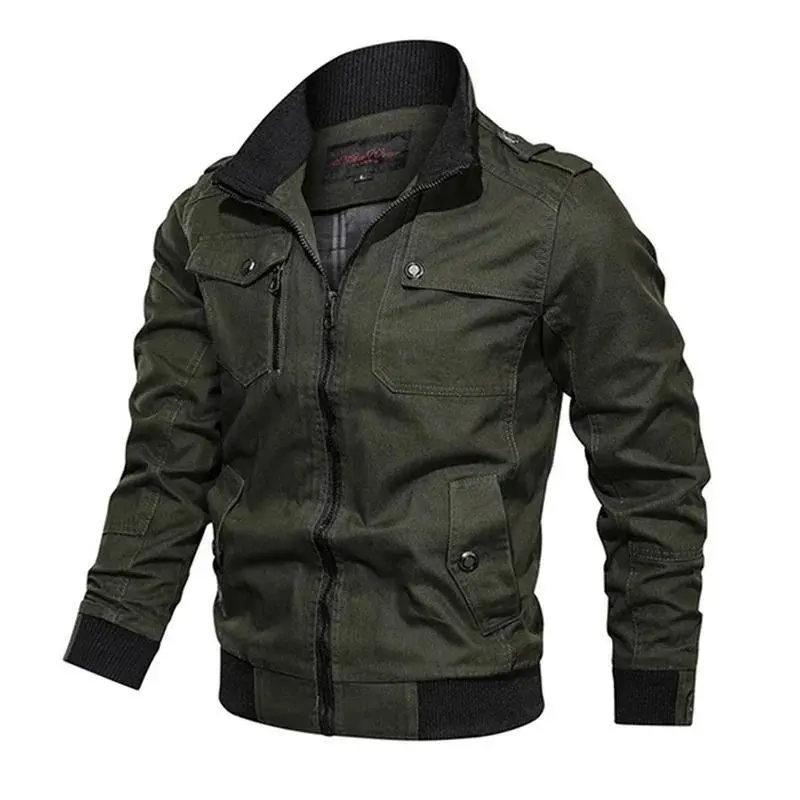 2025 new Pilot Bomber Jacket Coats Mens Cotton Cargo Jackets With Zipper Pockets Retro Casual Work Jacket Male Clothing Outwear