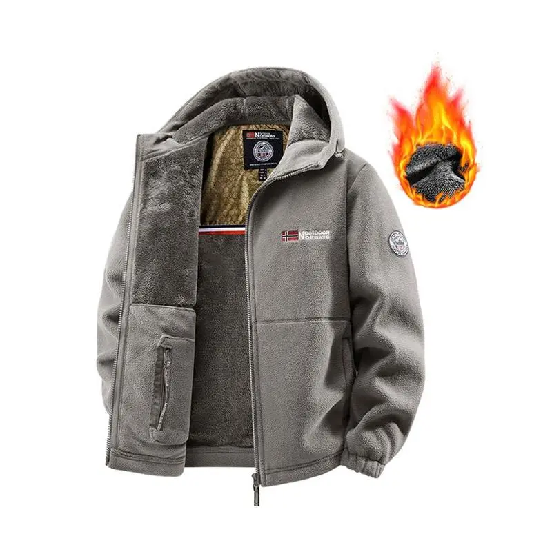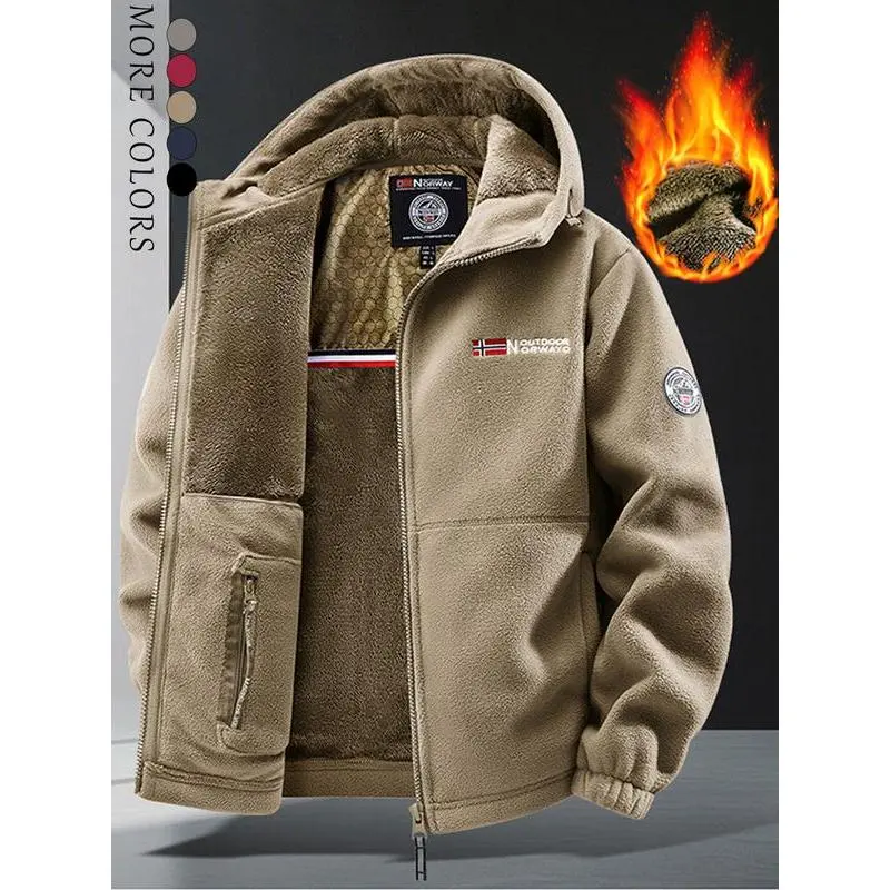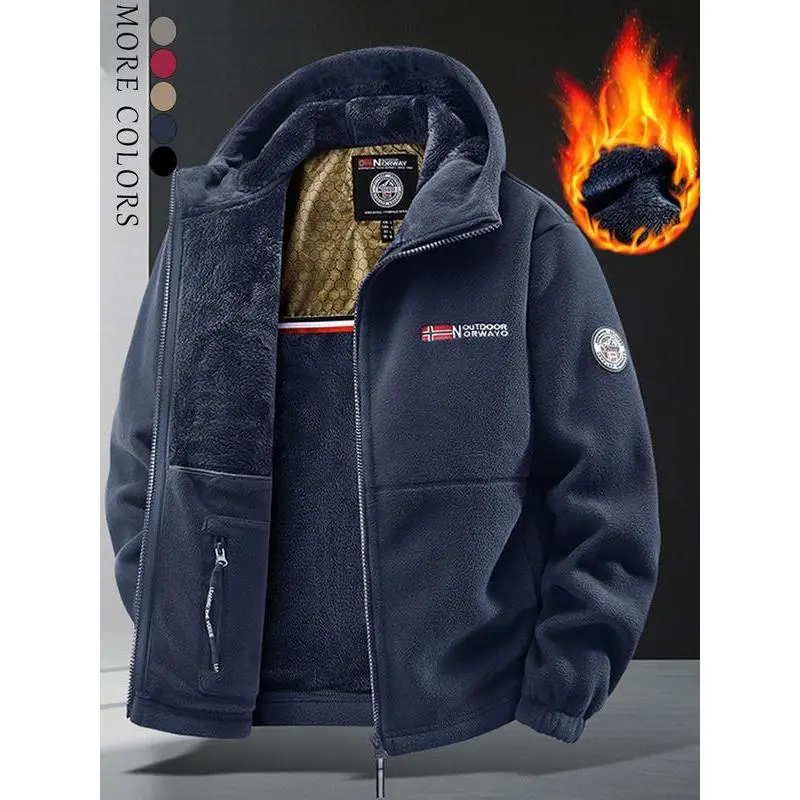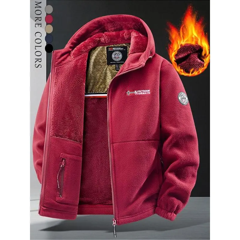 Men's Warm Hooded Fleece Jacket Coats, Norwegian Outdoor Design, Thick Graphene Lining, Windproof, Ideal for Winter Skiing Camping Daily Use
