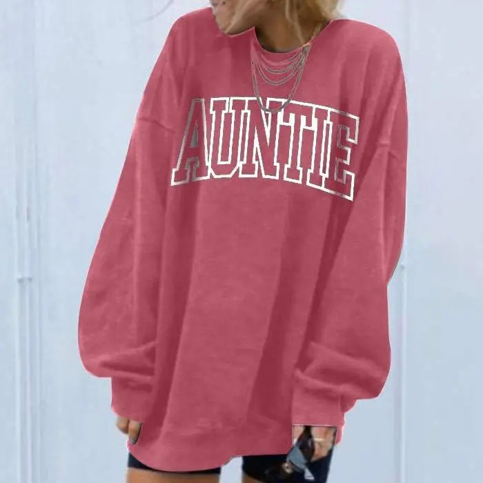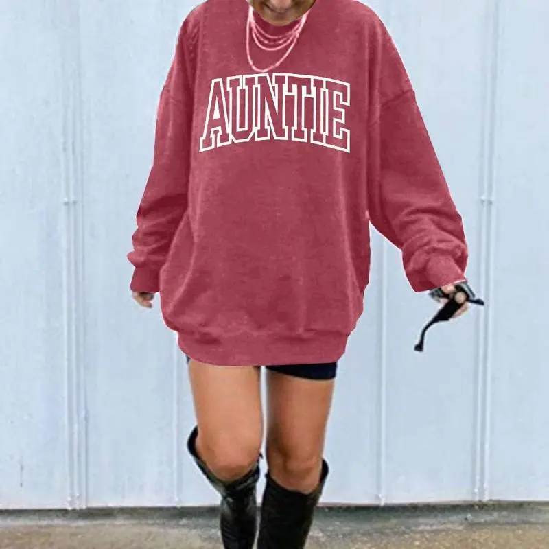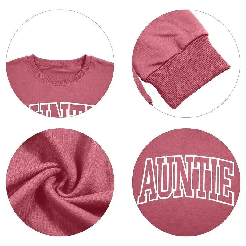 ?? Womens Aunt Sweatshirt ?? ? Sizes & Fit: Available in US sizes S (4-6), M (8-10), L (12-14), XL (16-18), XXL (20-31). Refer to the product description for detailed sizing. This hoodie features a crewneck design that contours the body, offering casual comfort. ?? Material & Design: Crafted from a soft cotton blend fabric, this sweatshirt boasts a cute Auntie letter print. It's a lightweight, classic fit, ideal for women and girls. The long sleeves add extra warmth, making it perfect for all seasons. ?? Printing Technology: Advanced printing ensures vibrant, long-lasting Auntie designs. These prints resist fading after multiple washes, maintaining their color and style. ?? Ideal Occasions: A great gift for moms, aunts, grandmas, or best friends. Wear it for casual outings, vacations, lounging, parties, or streetwear. It's versatile and suitable for various settings. ?? Perfect Pairings: This relaxed-fit sweatshirt pairs effortlessly with shorts, pants, jeans, sneakers, boots, and more. Elevate your fashion appeal with this beautiful and elegant tee!