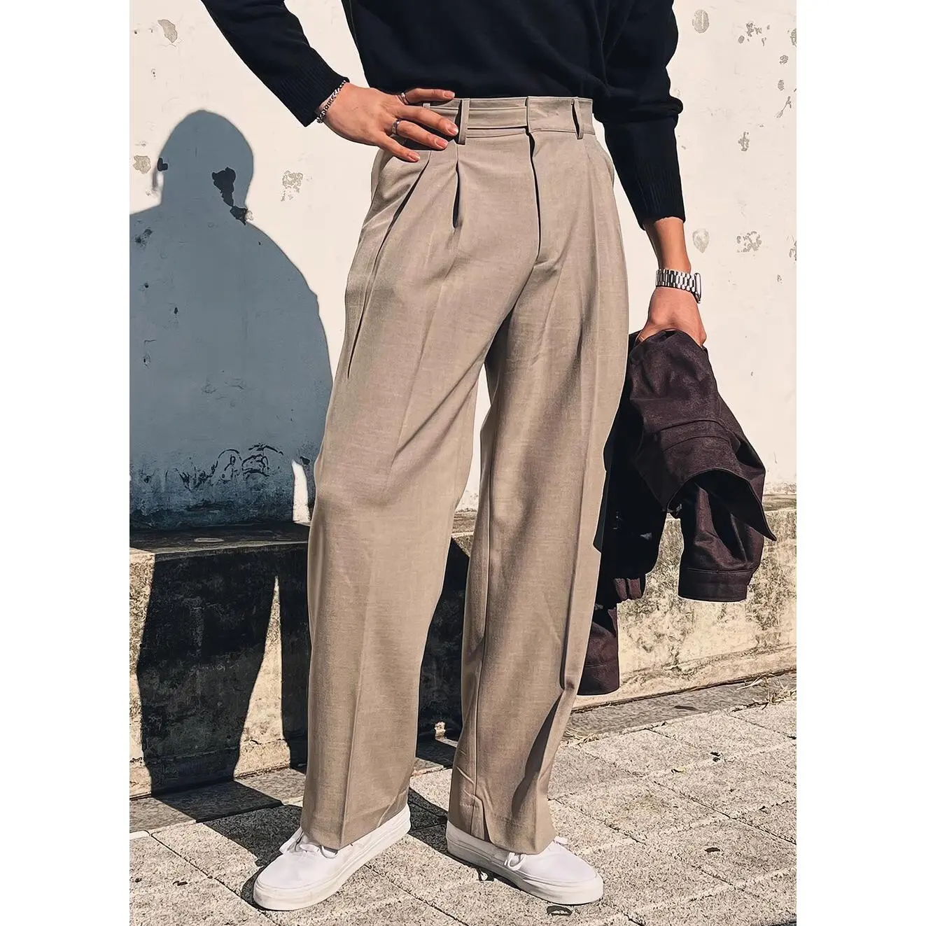High-waistedsuitpantsmen'sdrapestraightloosepantswide-legcasualtrousers