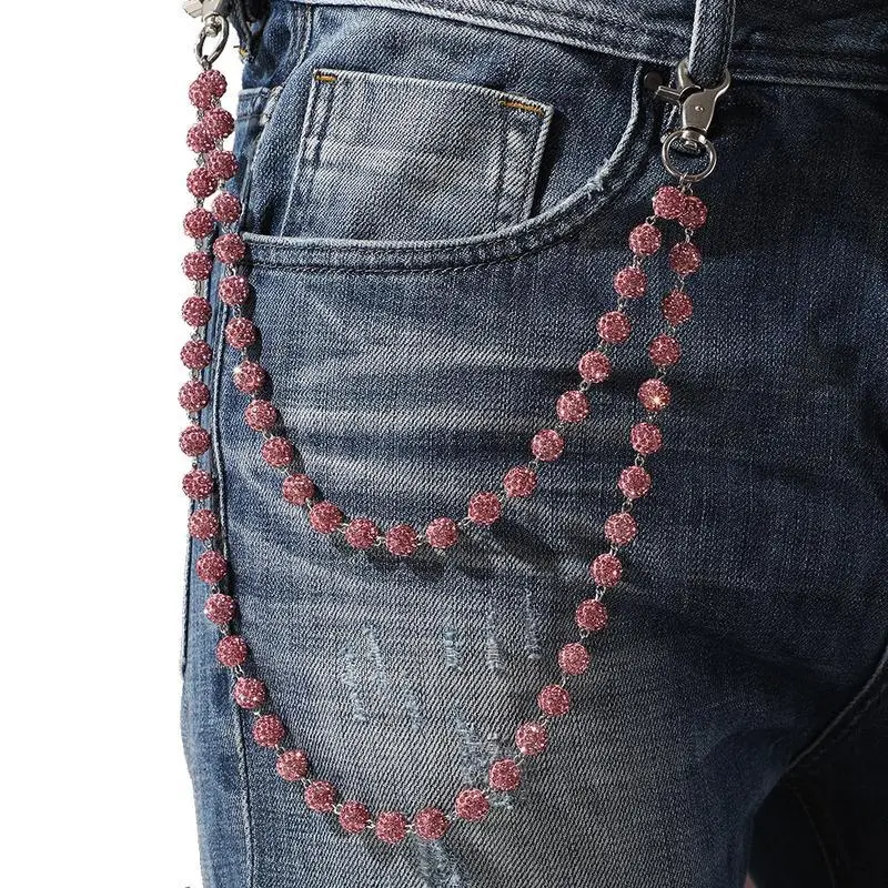 Faux Rhinestone Decorated Waist Chain, Fashionable Flower Design Pants Chain for Men, Casual Trendy Accessories for Daily Wear hiphop pendant tumble keychain Elegant Circle and Cross Bead Necklace Sparkling Zircon Inlay Cubic Zirconia Jewelry elegant set