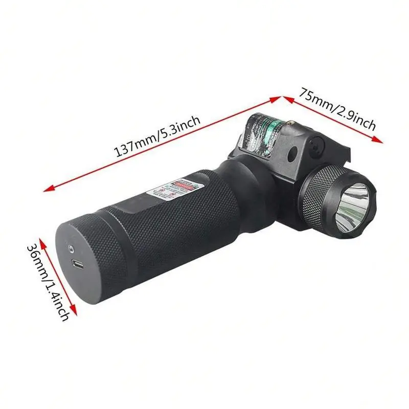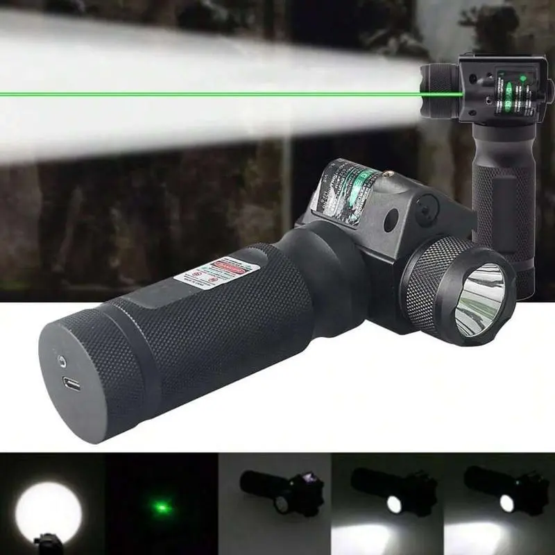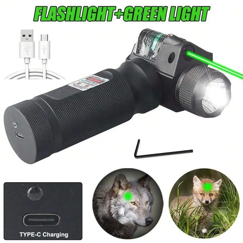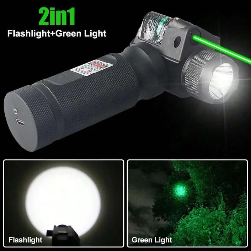 2in1GreenBeamandWhiteLEDFlashlightCombowithTypeCRechargingforOutdoorHuntingCampingHikingEmergencyPreparednessGear