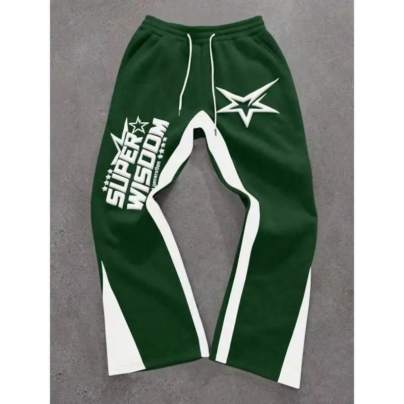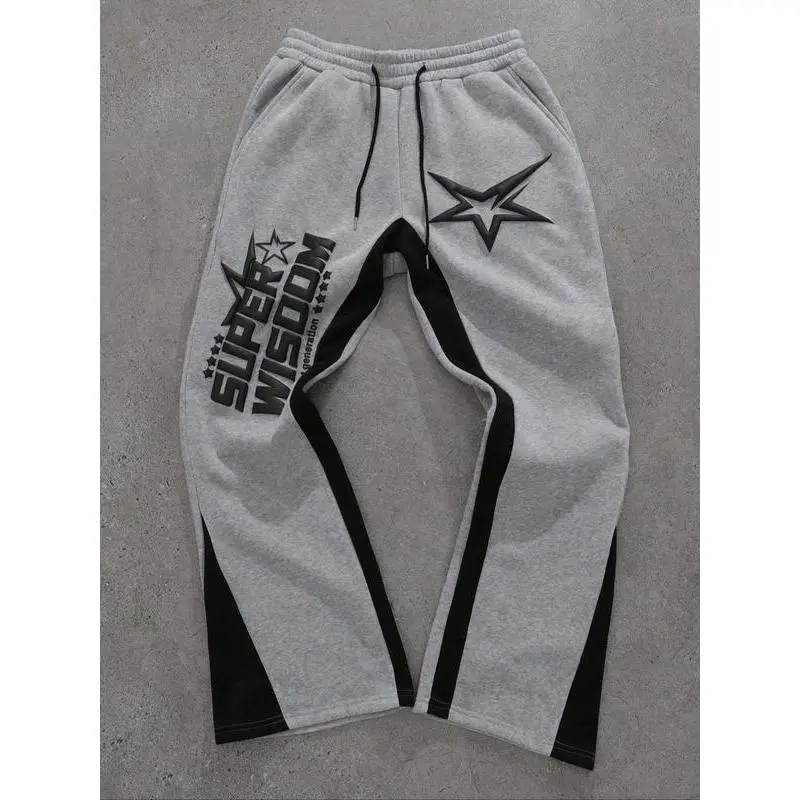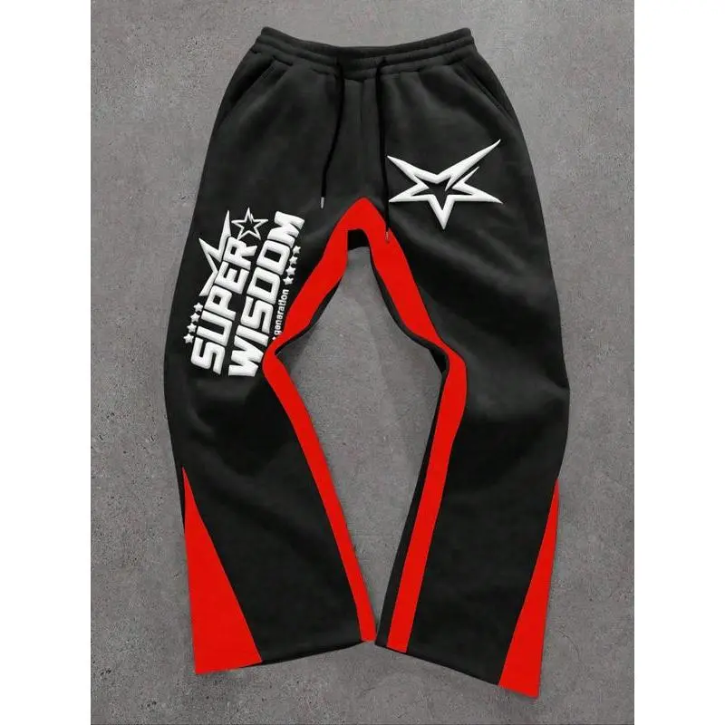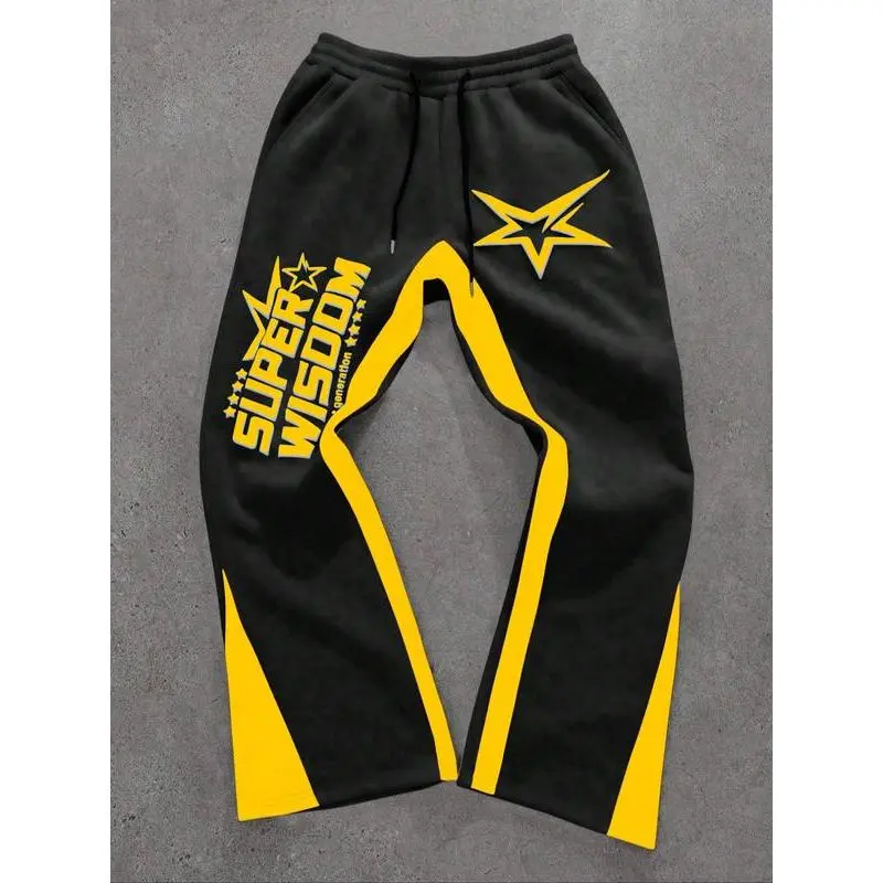 Men's Y2K Casual Colorblock Letter & Star Print Drawstring Waist Joggers, Loose Fit Streetwear Pants for All Seasons