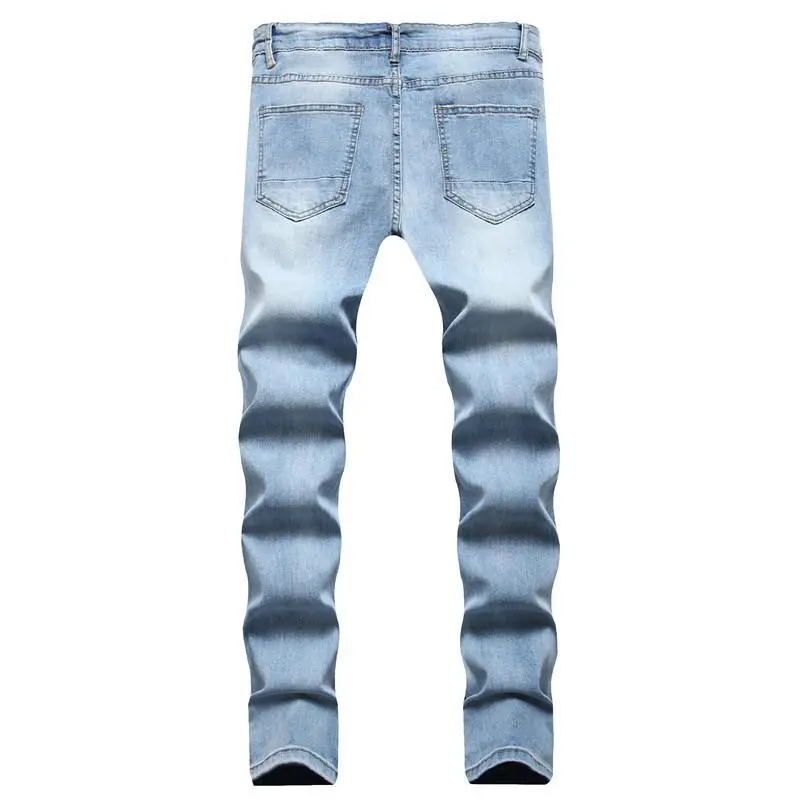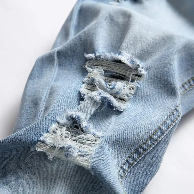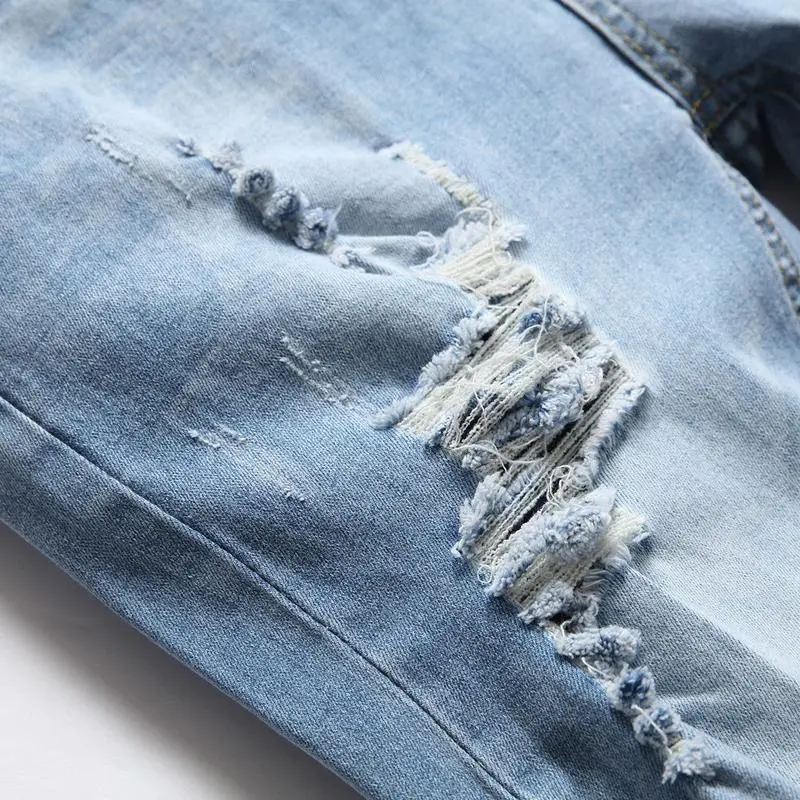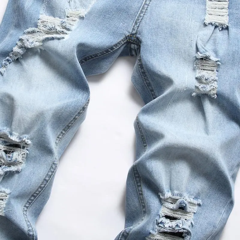 Men's Ripped Stretch Skinny Jeans Denim Trousers - Modern Streetwear Slim Fit Casual Pants with Holes and Pencil Style