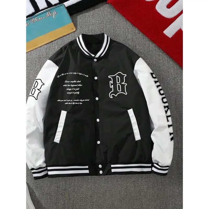 Splicing baseball jersey: black and whit