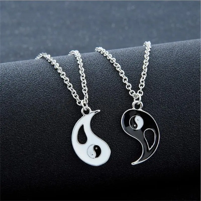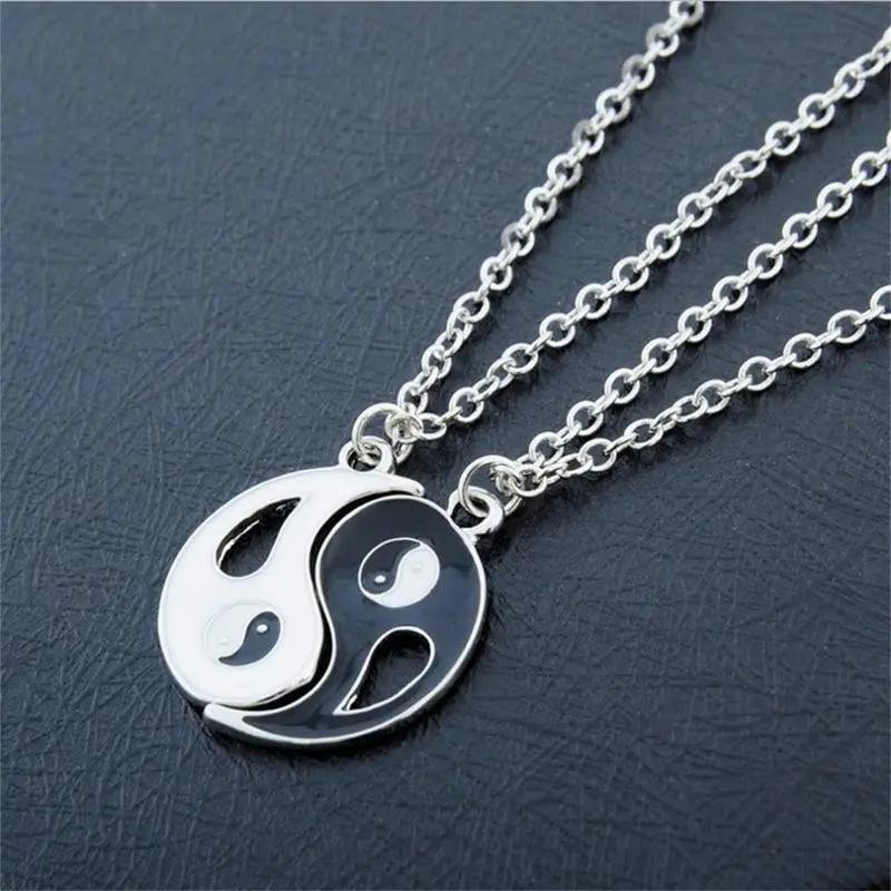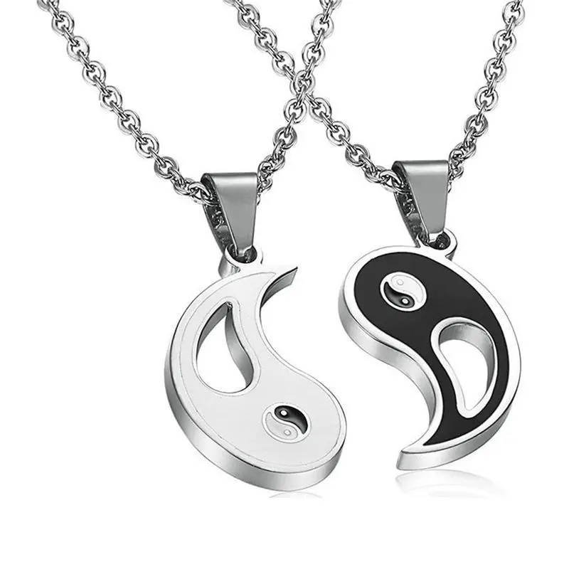 Yinyang Pendant Necklace For Women Mens Stainless Steel Bff Couples Chain Personalized Matching Puzzle Diagrams Friend Necklaces Valentines Birthday Thanksgiving Christmas