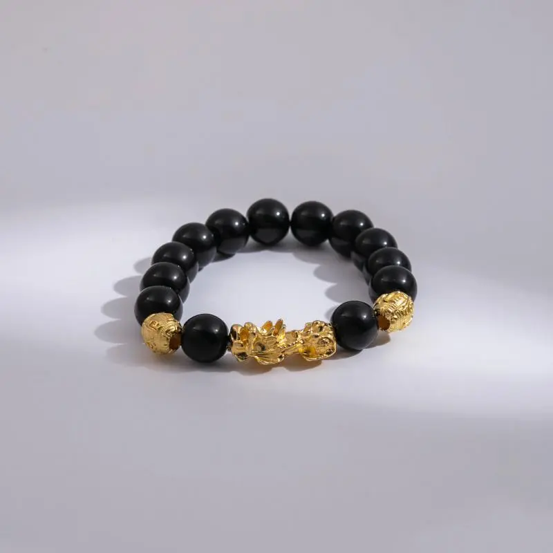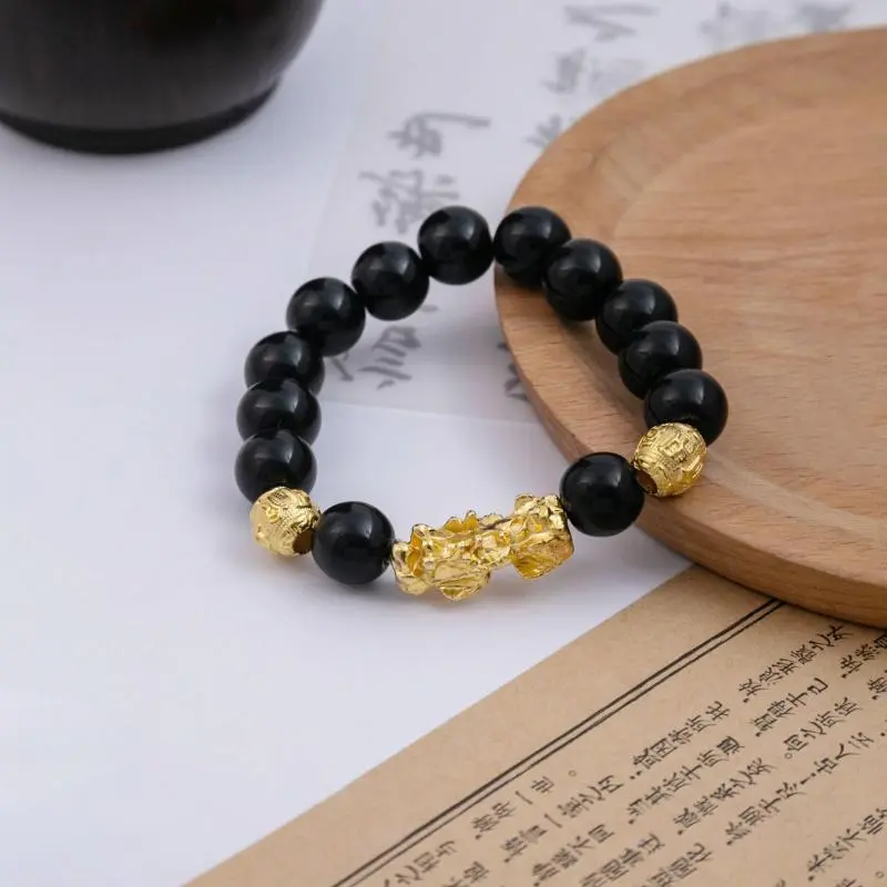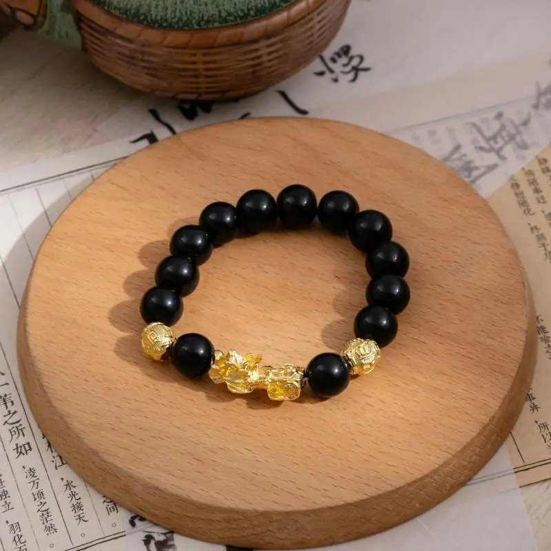 Pixiu Imitation Obsidian Bracelet New Chinese Style Wealth-Attracting Buddha Bead Bracelet luck feng shui