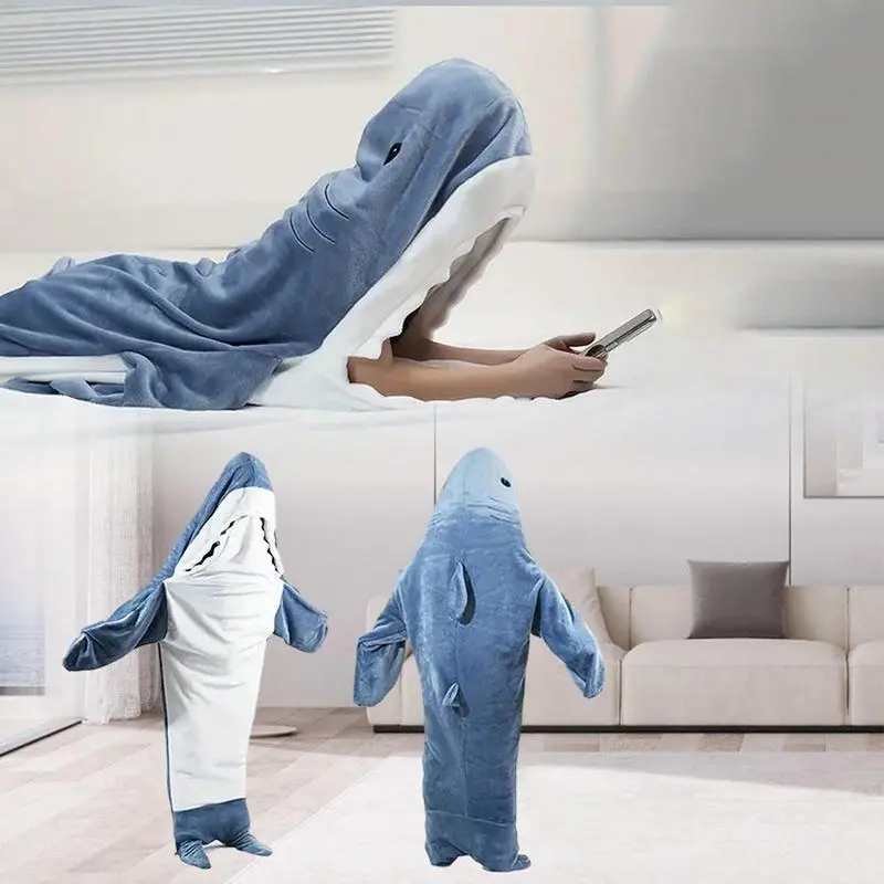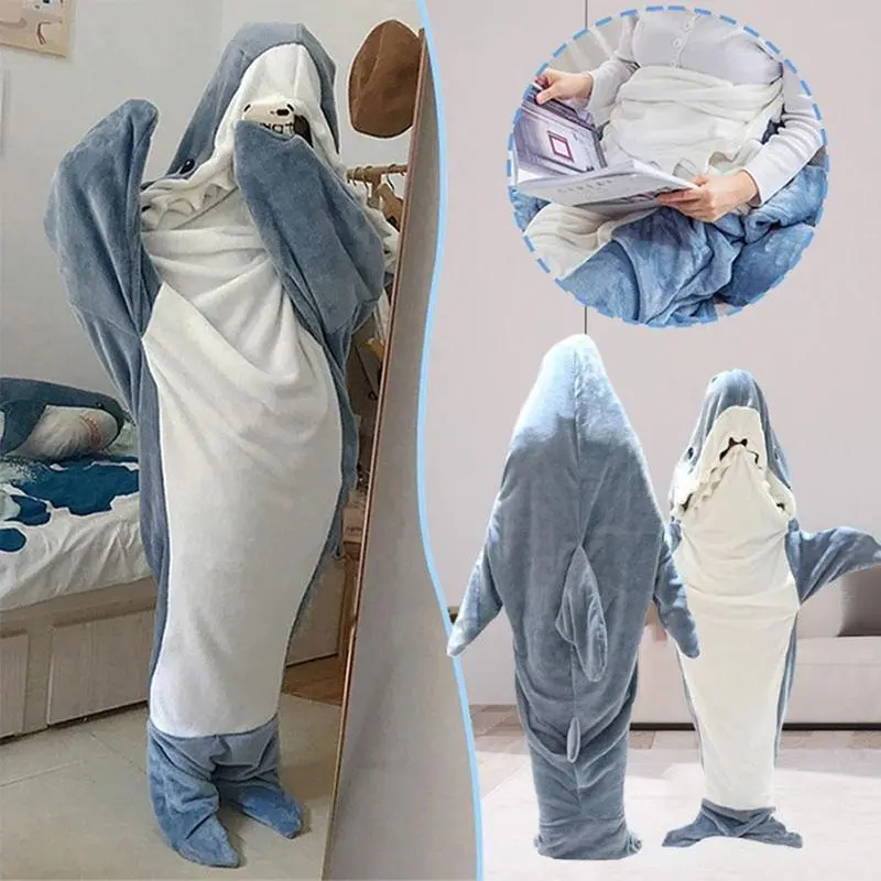 Shark jumpsuit, wearable blanket hoodie, comfortable flannel casual blanket, cartoon animal shark jumpsuit shark clothing, suitable for adults and children, can be used as pajamas or for work