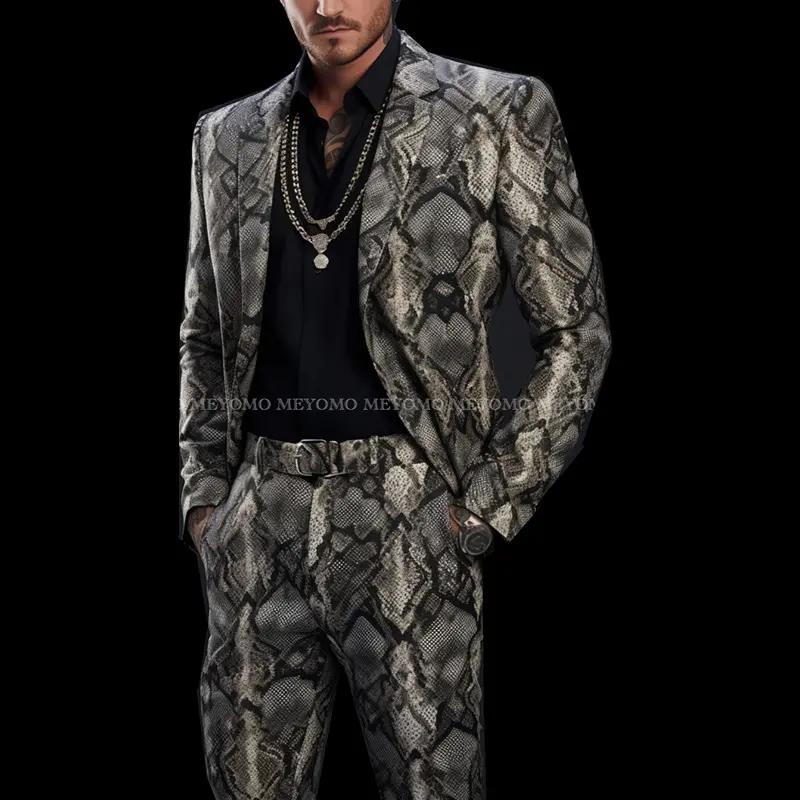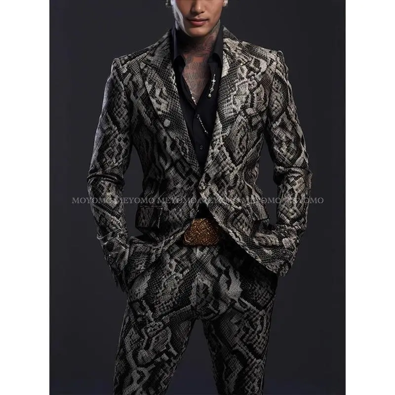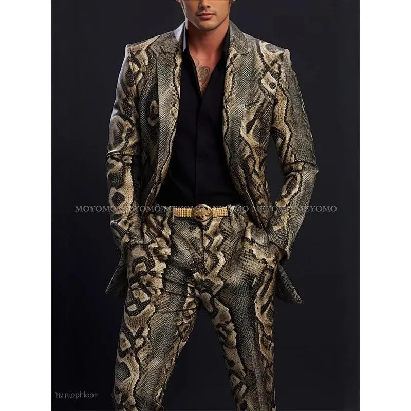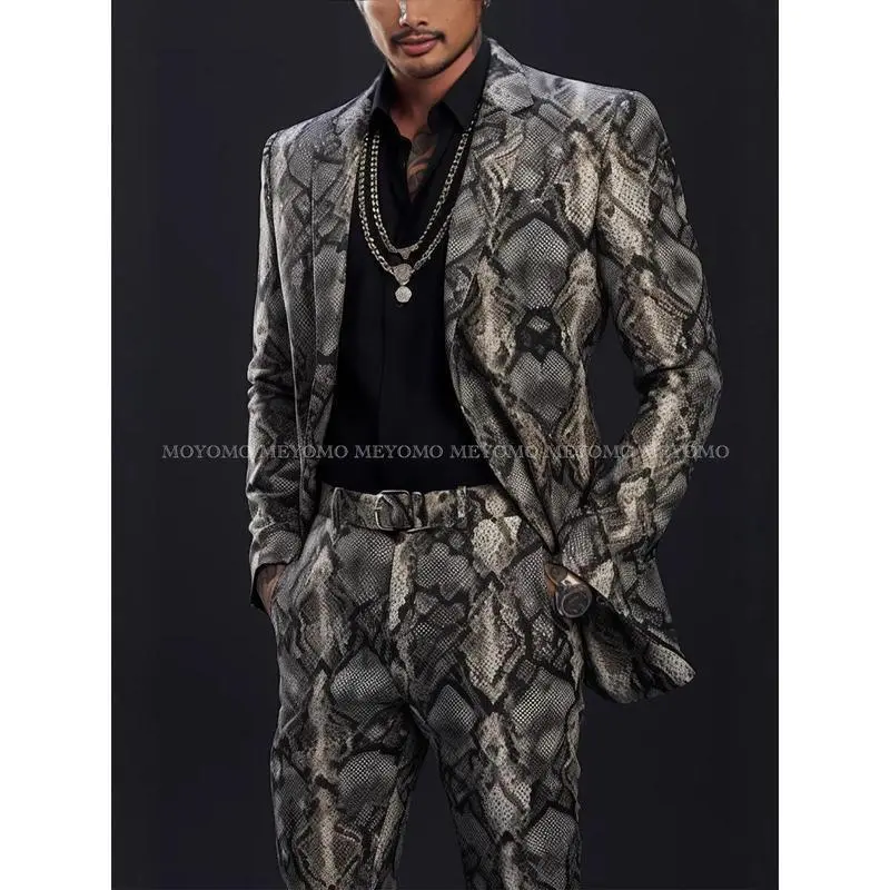 British Style Men's Suit Formal Wear Cool Snake Pattern Suit Set Plus Size