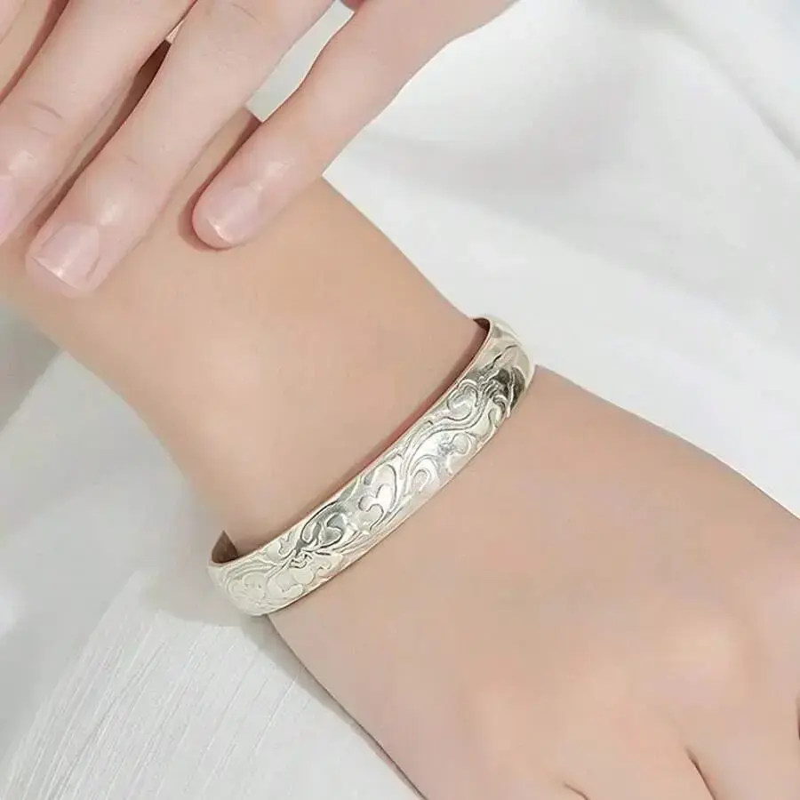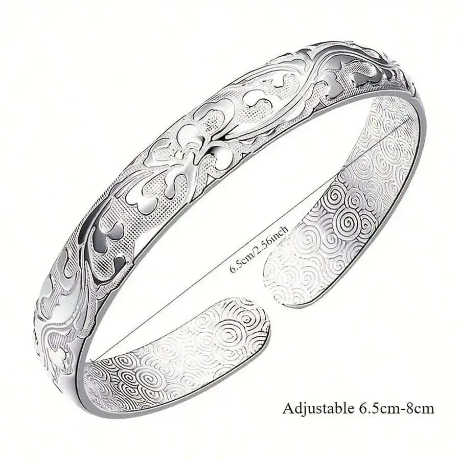 925 Sterling Silver Floral Bangle – Elegant Open Bracelet With Beautiful Carvings, Perfect For Special Occasions