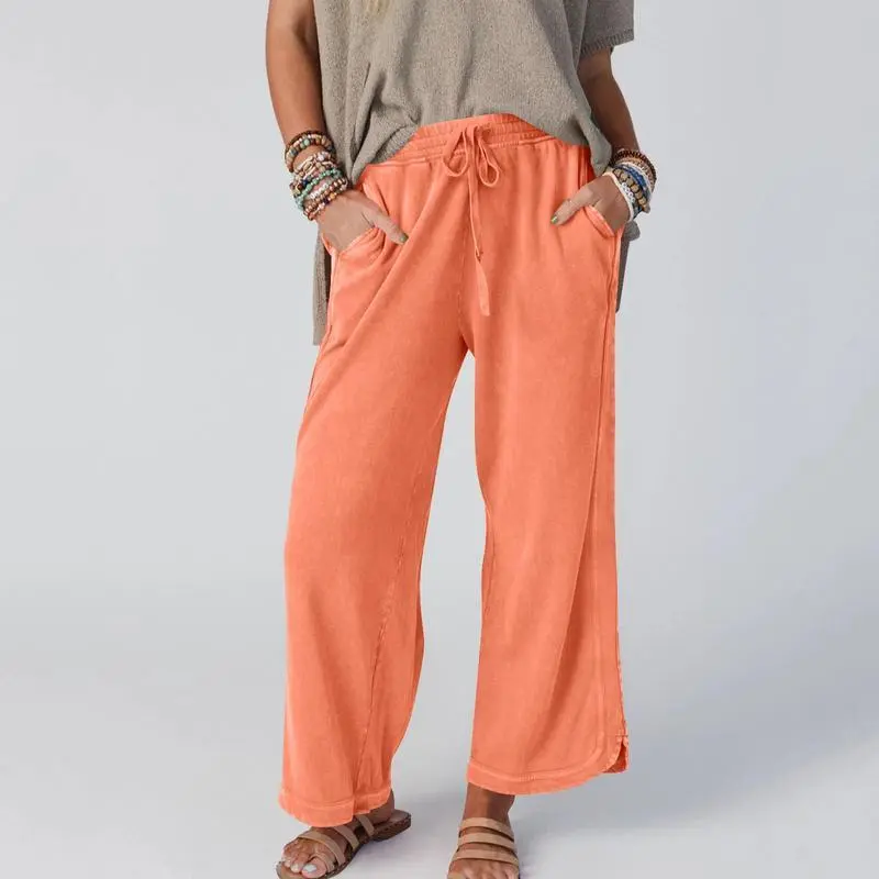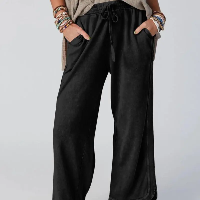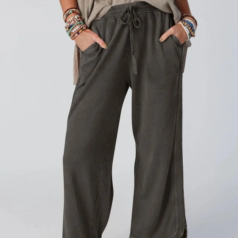 Casual Wide Leg Sweatpants Ladies ✨Use these high-waisted loose acid-washed pants to enhance your casual style.Made from a blend of cotton and polyester, they are both comfortable and fashionable.The wide-leg design ensures freedom of movement, making them perfect for sports or leisure time.The drawstring allows for adjustable fit, and convenient pockets add practicality Product Features and Advantages 🌿Made of cotton and polyester material, durable and comfortable 🧦Designed for high waist, highlighting body curves 🧳Loose fit, wide-leg design, increased comfort 🧶Drawstring for adjusting waist size 🏃♀️Suitable for sports or casual wear These wide-leg pants are versatile and suitable for various occasions. The distressed treatment adds a unique style that makes them stand out. Pair them with simple tops or sportswear to create a fashionable look. Enjoy the blend of fashion and functionality in every piece of clothing