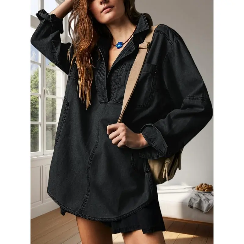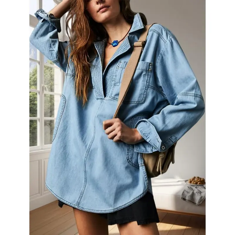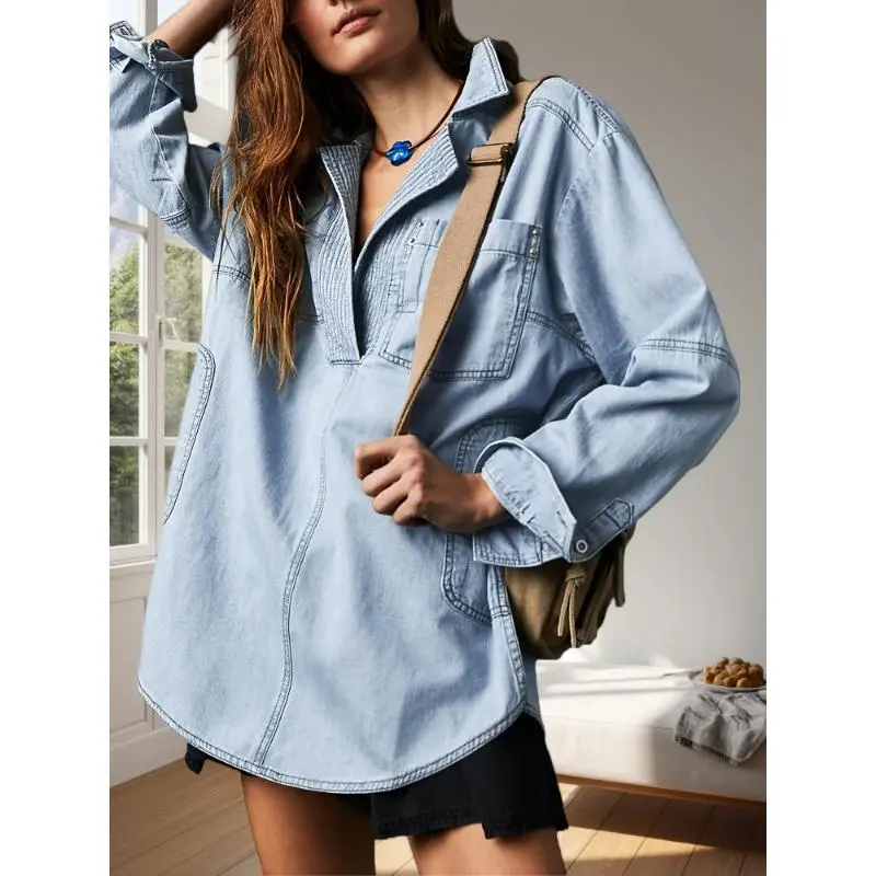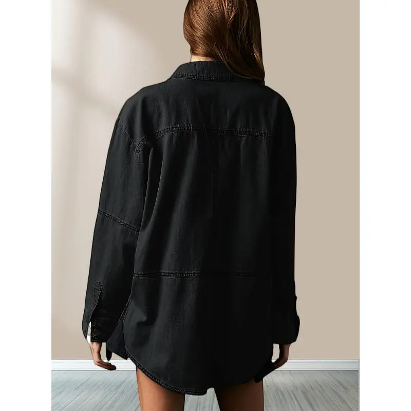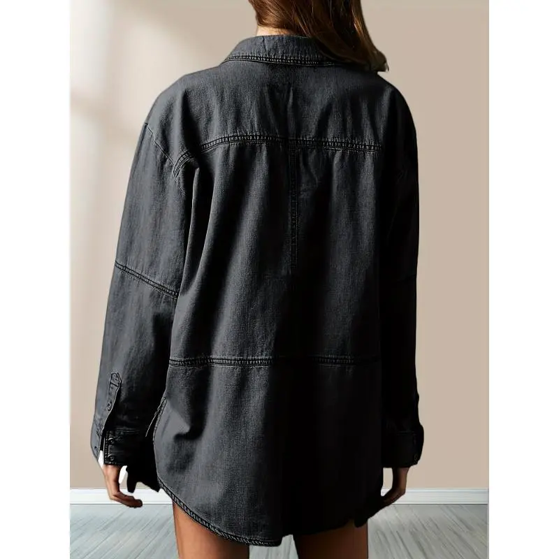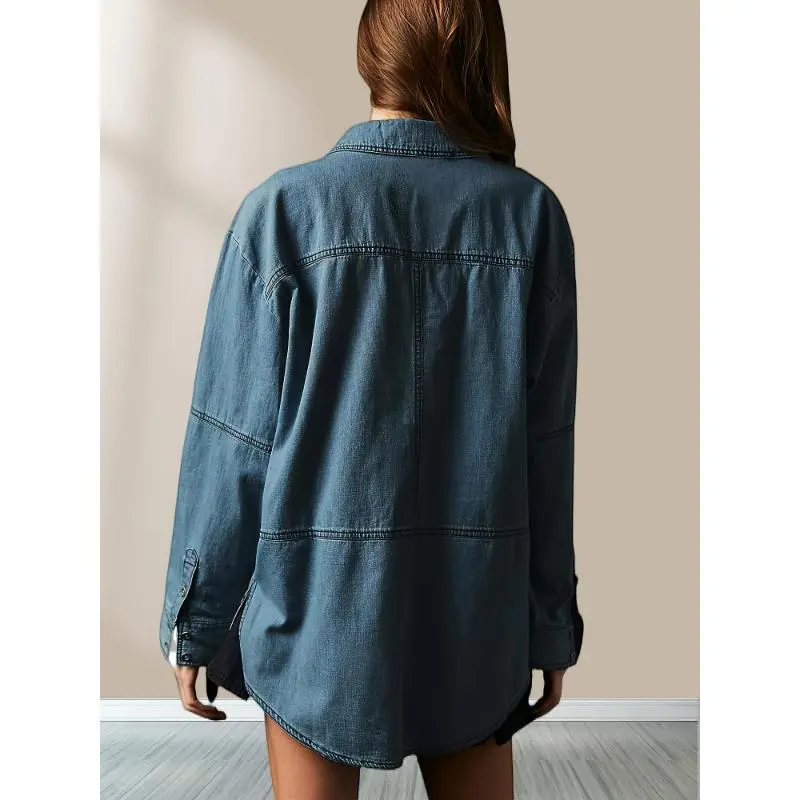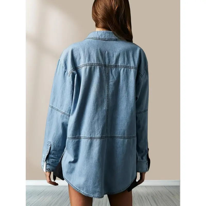 Women'sCasualDenimJacketforEverydayWearwithPocketandStripedDesignCoats