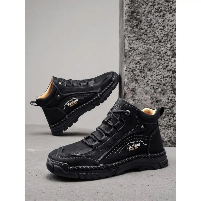 ��High-top structure��: Featuring a high-top cut, offering ankle support during outdoor activities like hiking and trekking. ��Microfiber leather��: Crafted with quality microfiber leather, providing durability and a refined appearance suitable for various occasions. ��Rubber sole��: Equipped with a rubber sole that enhances grip and traction, making it reliable for outdoor terrain. ��Multiple colors��: Available in various colors, allowing for personalization and match with different outfits and preferences. ��Medium width��: Designed with a medium width to accommodate a wide range of foot sizes, ensuring a secure fit during wear.