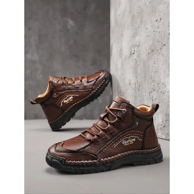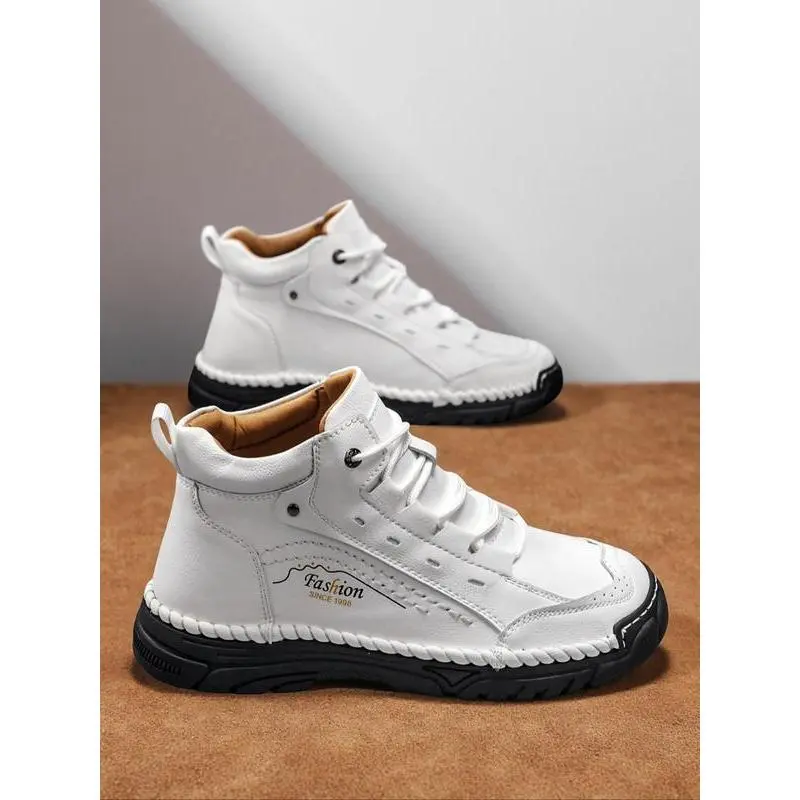 Men's Handmade Mid-Calf Casual Shoes, Fashion Letter Print High-Top Sneakers, Spring & Fall Outdoor Hiking Boots, Multiple Colors Available
