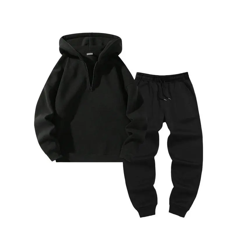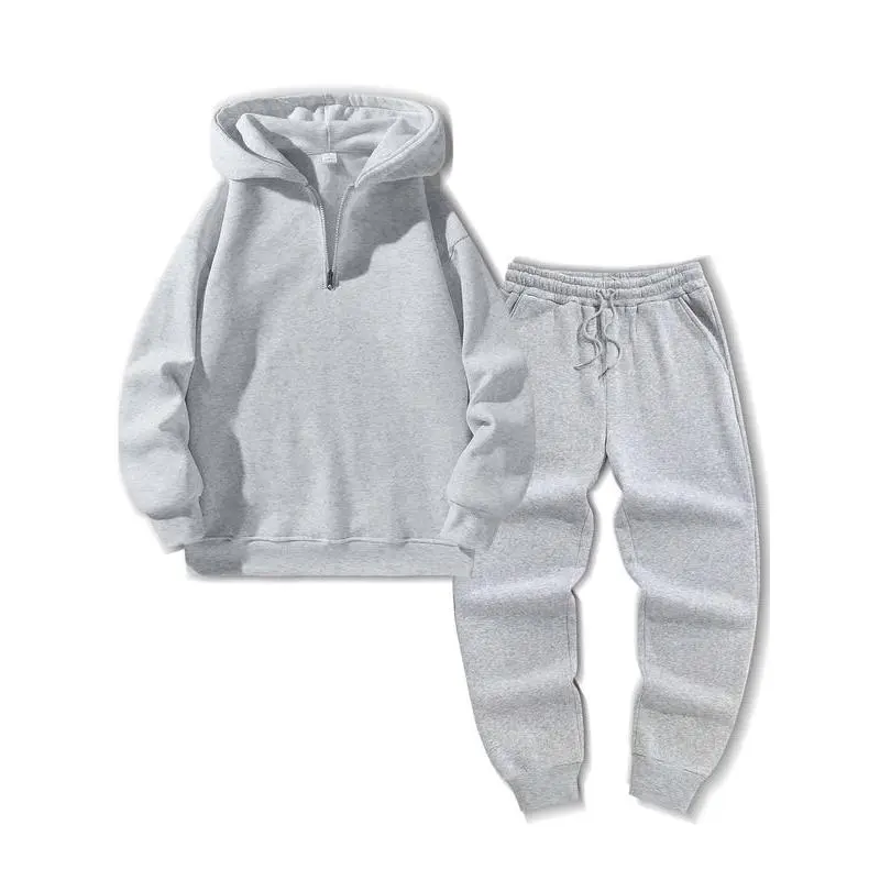 Men's Hooded Sweatshirt Set, Half-Zip Loose Fit Pullover, Fashion Jogger Pants, Casual Sportswear, Comfortable and Stylish