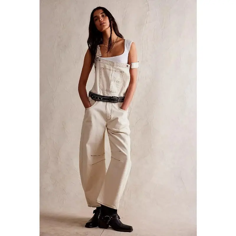 2025NewWashedVintageLooseStraightCargoJeansOveralls