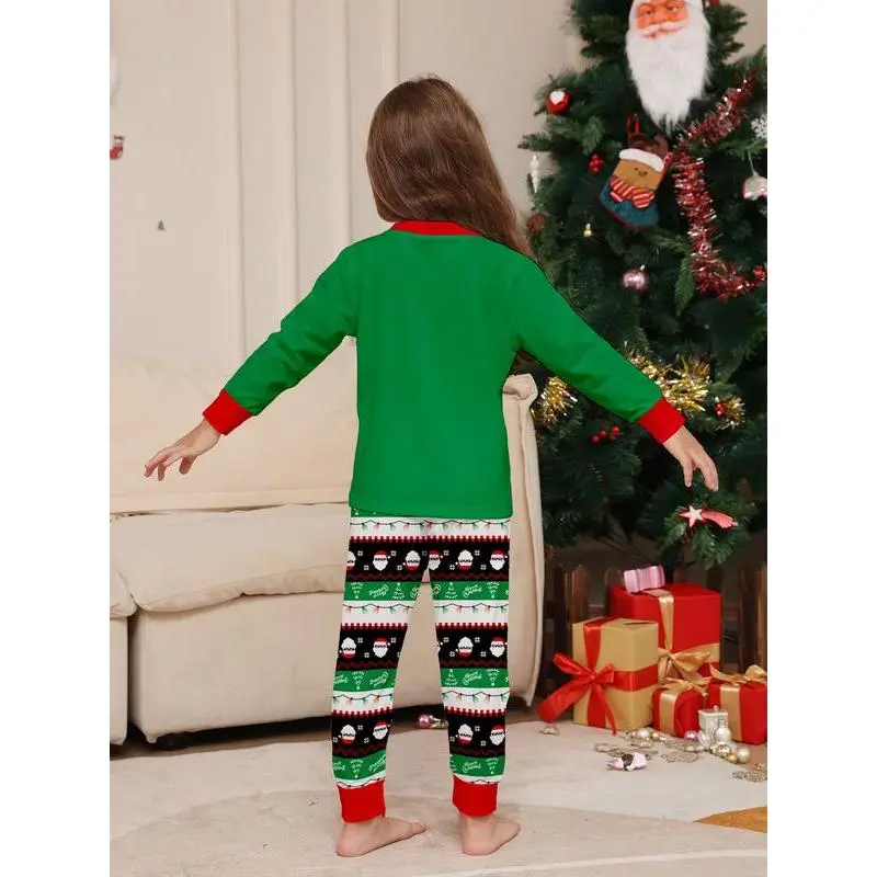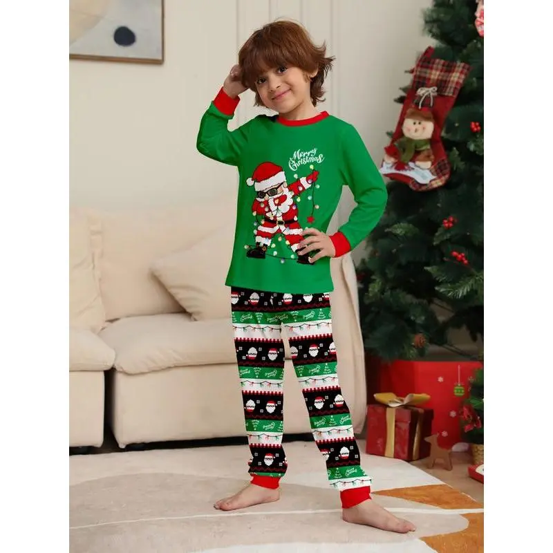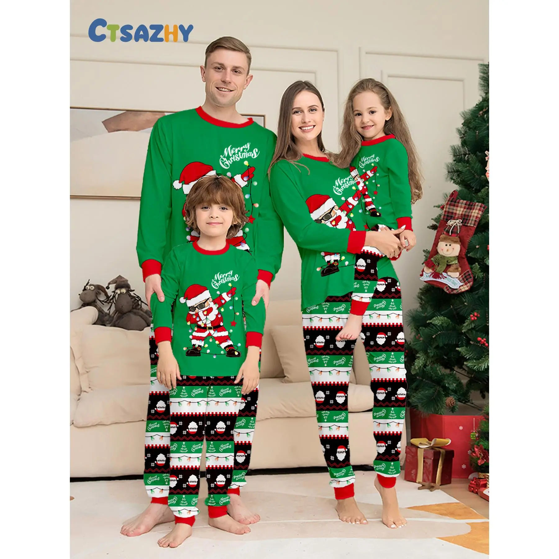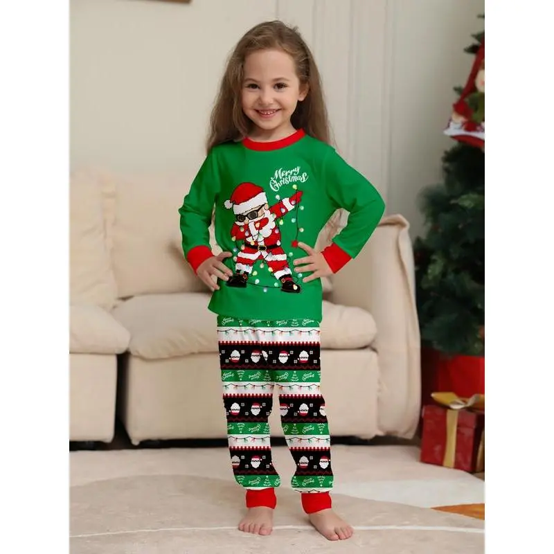 ChristmasFamilyPajamasSet,CartoonSantaPrintTop,StripedPants,CasualFittedSleepwearforAllSeasons