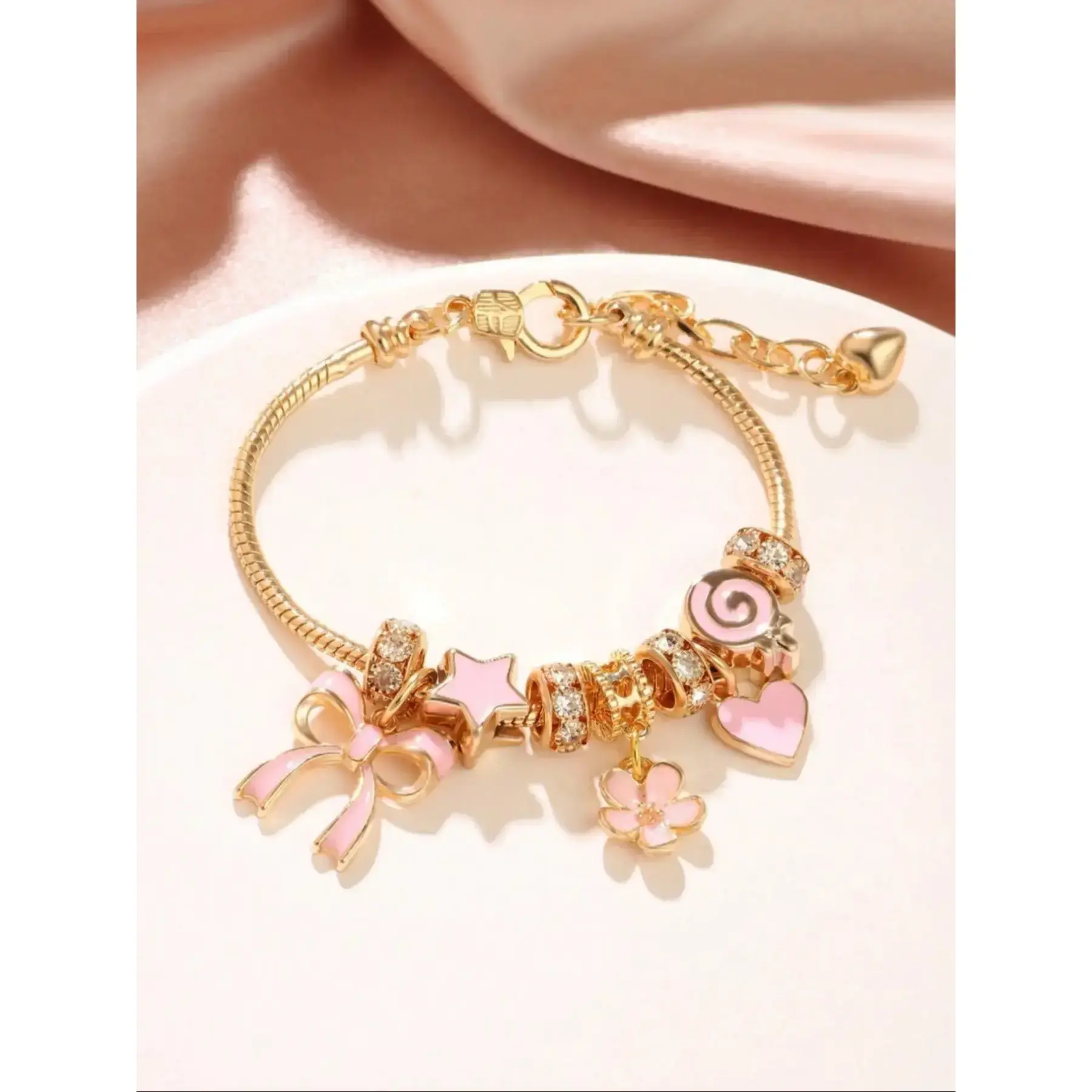 Cute Bow & Heart & Flower Design Charm Bracelet, Rhinestone Decorated Bracelet for Women & Girls, Trendy All-match & Exquisite Jewelry for Birthday Gift