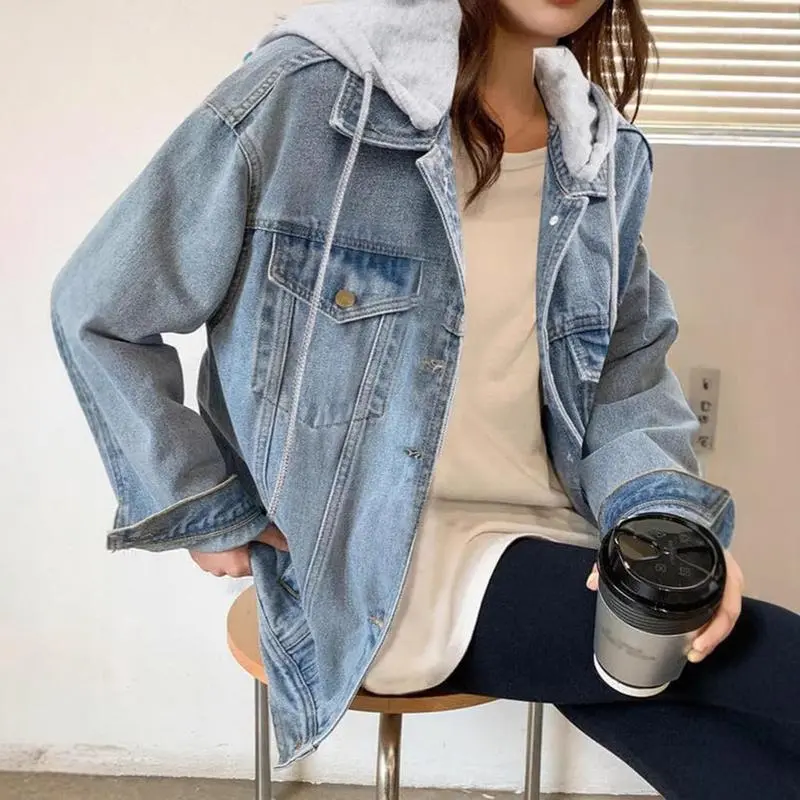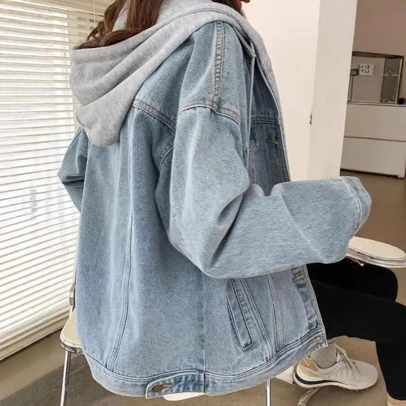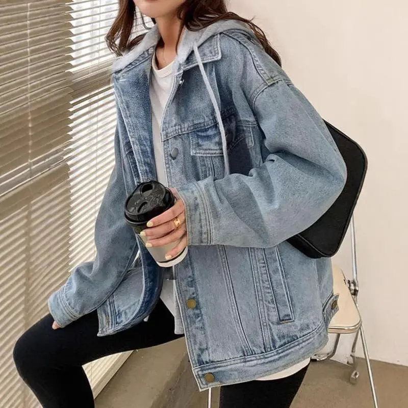 NewDenimJacketforWomenLooseCasualSpringAutumnHoodedVersatileWomenswearCoats