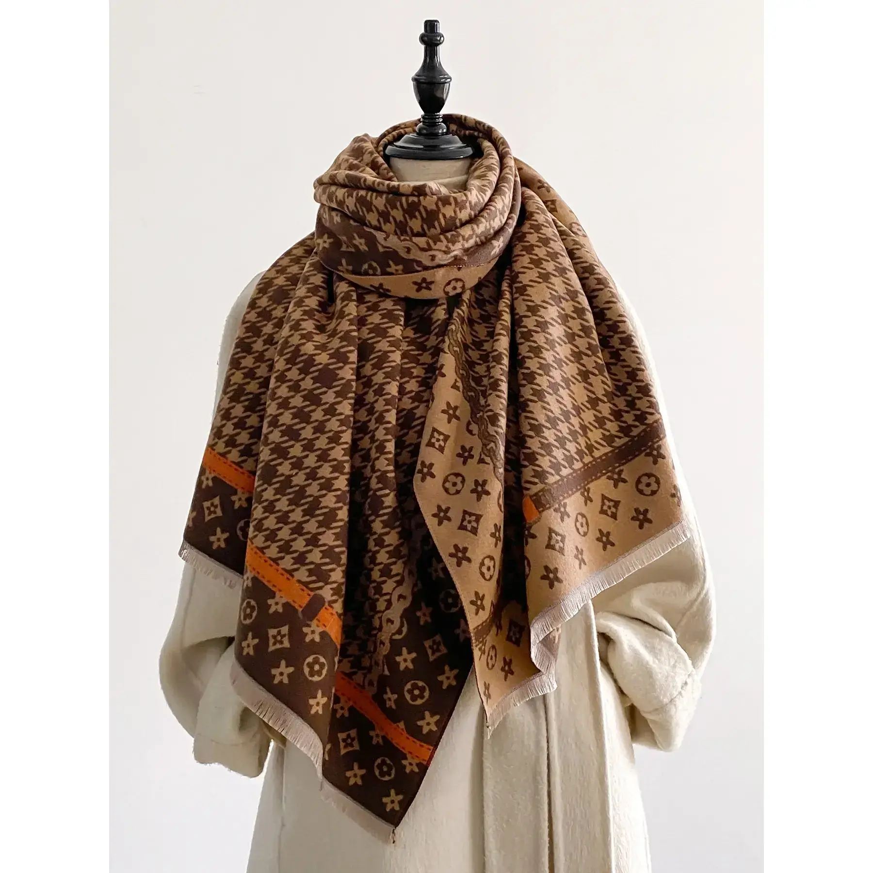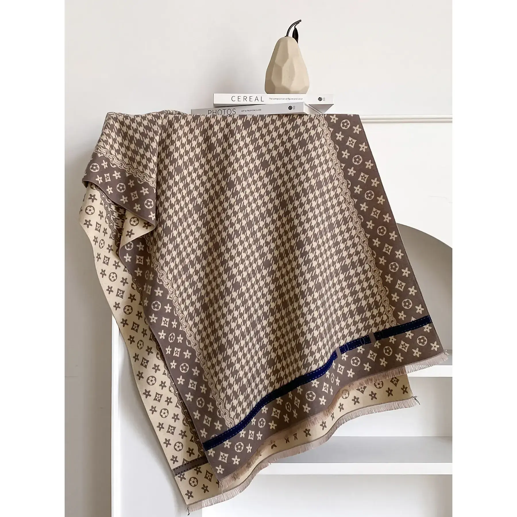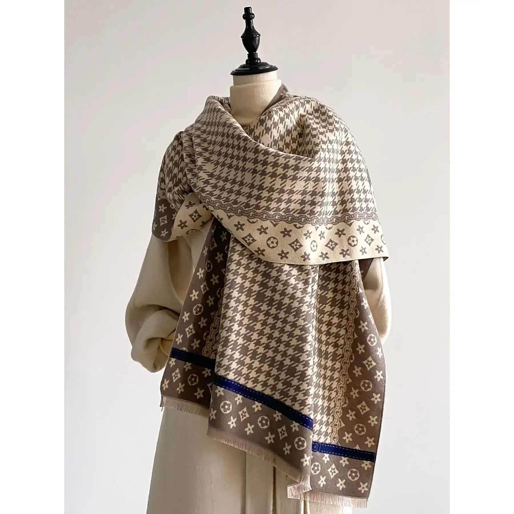 Women's Fashion Elegant Plaid Scarf with Fringe Decoration, Soft Warm Shawl for Fall & Winter, Stylish Accessory for Women and Girls, Blanket Scarf