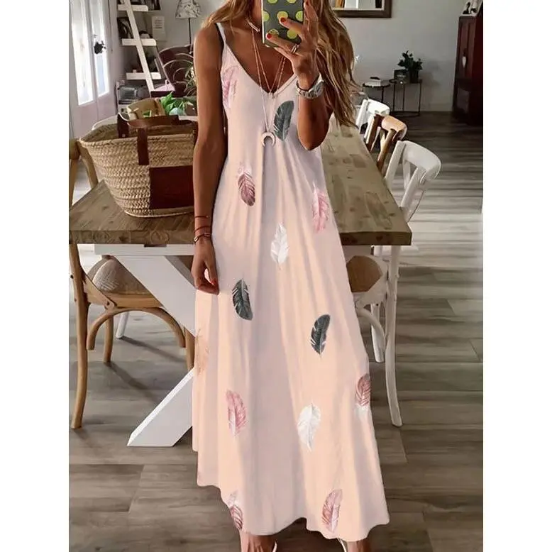 Composition: 100% PolyesterMaterial: PolyesterLength: Long lengthPattern: PrintApplicable People: AdultSheer: Semi-SheerType: SlipSeason: All-seasonOperation Instruction: Machine wash or professional dry cleanStyle: VacationFabric Elasticity: Mid ElasticityPrinting Type: Random PrintingWeaving Method: Knit FabricCollar Style: V-neckItem ID: DQ08788Origin: Guangdong,China