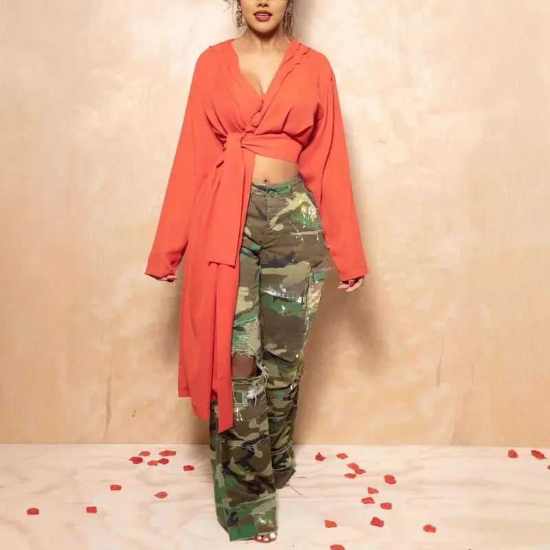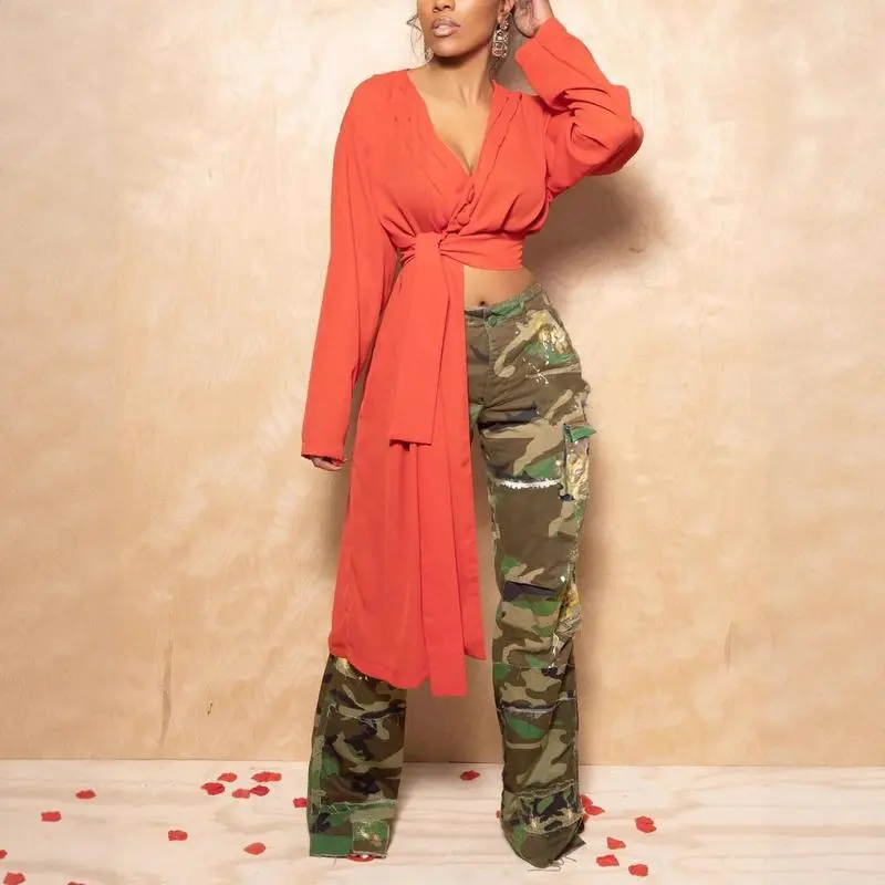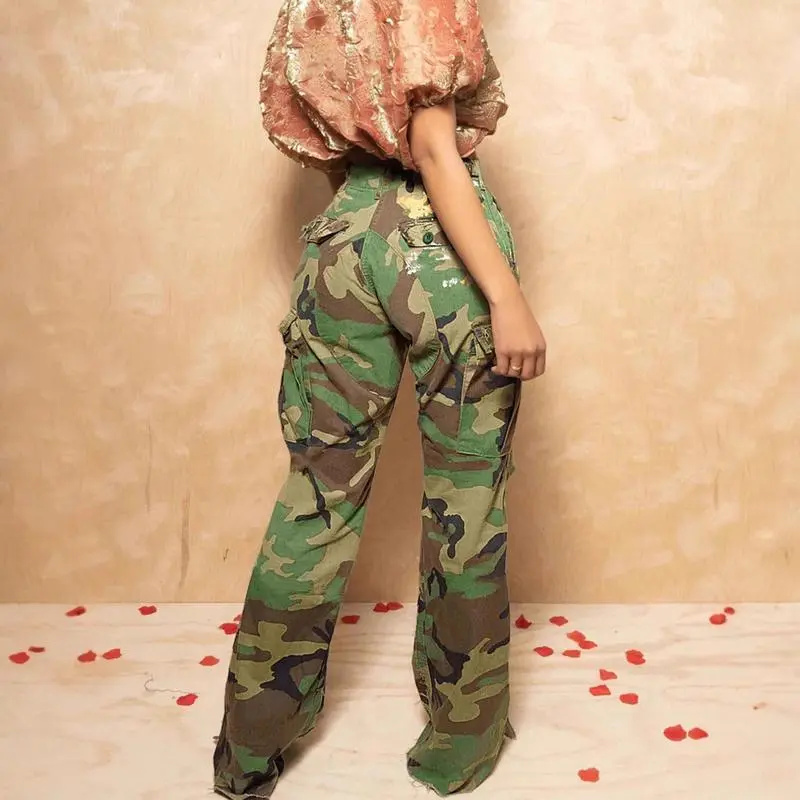 Women'sFashionCasualCamouflagePrintMulti-PocketStreetStyleCargoStraight-LegPants