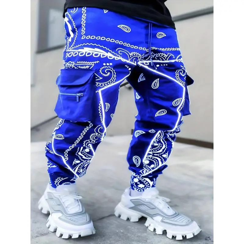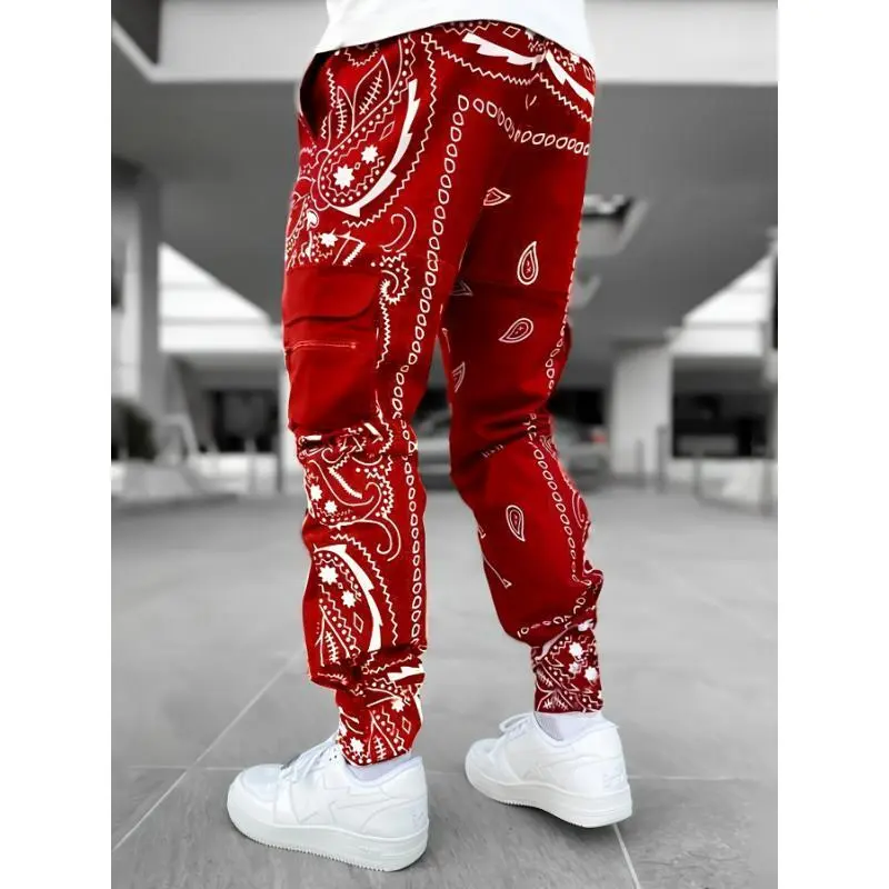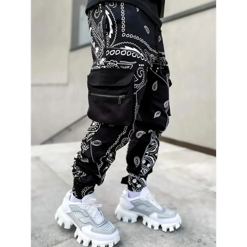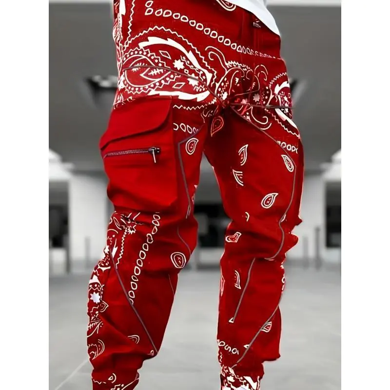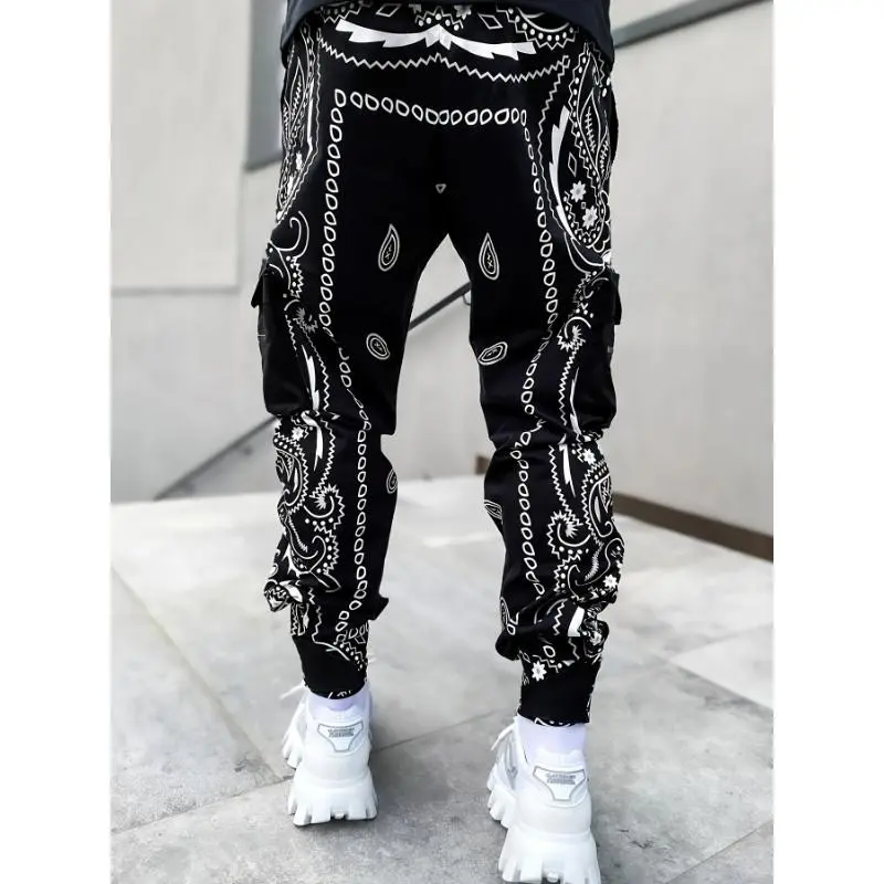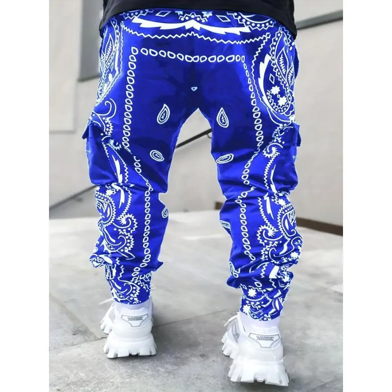 Multi Pocket Men's Paisley Pattern Joggers, Casual Sports Pants For Fitness