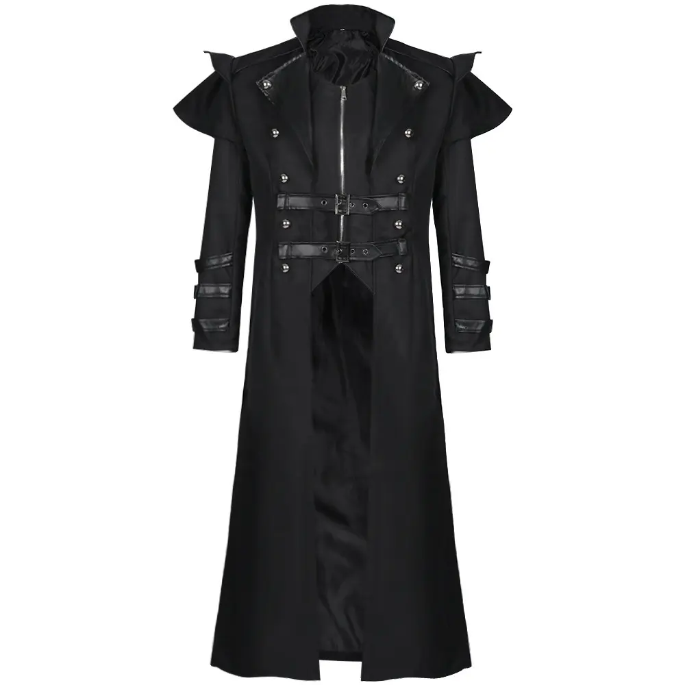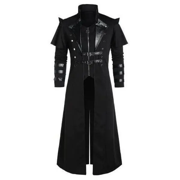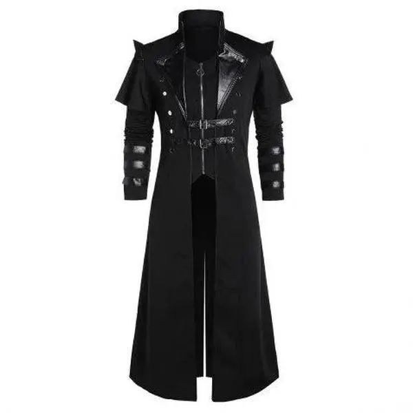 This medieval Renaissance punk long slit coat is an excellent choice for stage performances and creative photography, perfectly blending retro aesthetics with punk spirit.Inspired by the clothing of the Renaissance period, it features a large lapel and puffed sleeves, paired with distressed velvet or coarse linen fabrics, exuding a classical and luxurious charm.Punk elements are strongly injected through metal rivets, chain decorations and leather straps, creating a unique visual tension. The super-long slit design extends from the hem to the thighs.As you move, the hem of the garment flows gracefully, exuding a carefree and unrestrained charm, adding drama and dynamic beauty to the overall look.The three-dimensional cutting conforms to the figure, outlining an elegant contour while ensuring free movement.Whether used for character shaping in stage plays or as the core styling element in retro-themed photography, this coat can instantly create a strong atmosphere, helping you transform into a mysterious traveler through time and space, becoming the absolute focus under the spotlight or in front of the camera. Product weight: 680 grams Size chart: