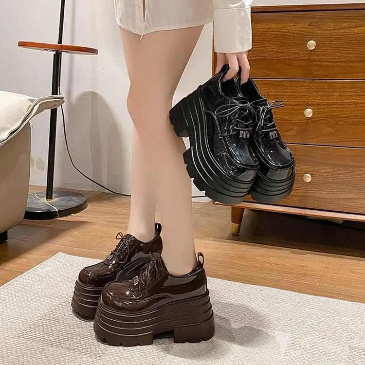 Autumn New Woman Platform High Heel Sneakers Shoes 2025 New Fall PU Leather Oxford Shoes