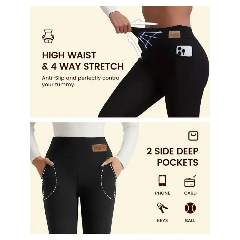 SHOWITTY Women's High Waisted 1/3 Pack Fleece Lined Leggings with Pockets – Thermal Warm Yoga Pants for Winter Workout & Everyday Wear