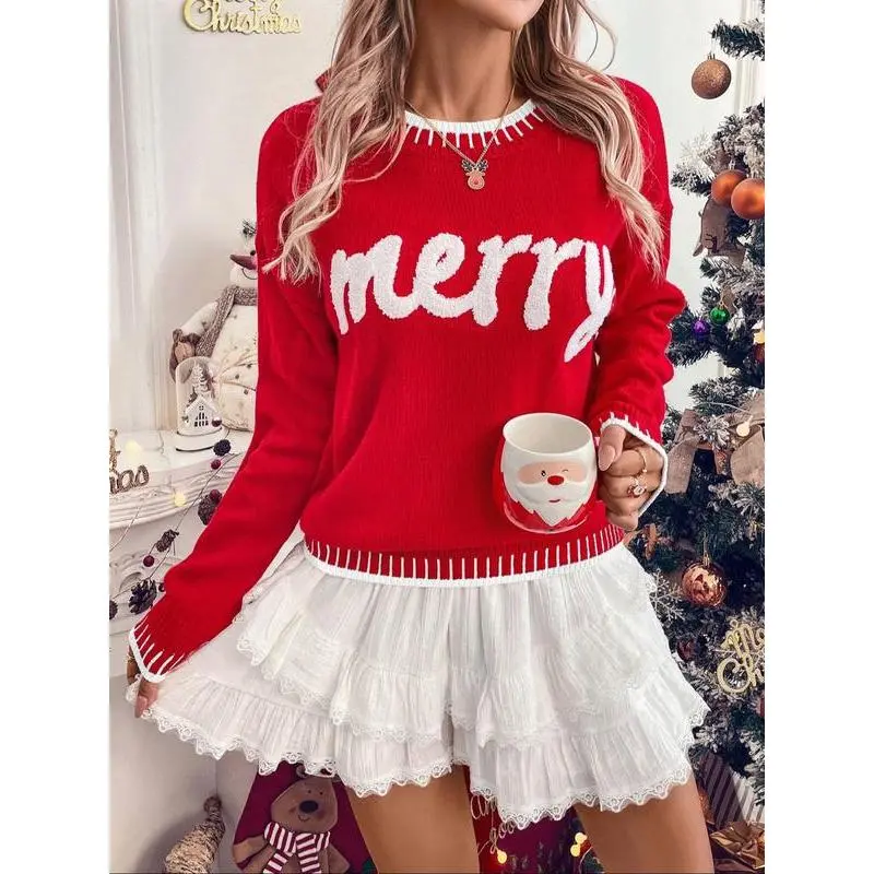 ��Seasonal Fabric��: Crafted from moderate thickness knit, this sweater ensures warmth during the winter months while remaining breathable. ��Distinctive Pattern��: Features a unique letter pattern that adds a touch of individuality, setting it apart from typical winter wear. ��Fitted Cut��: Tailored for a fitted silhouette, this sweater accentuates the body shape without compromising ease of movement. ��Soft Texture��: The knit fabric provides a gentle feel against the skin, enhancing your wearing experience throughout the day. ��Christmas Theme��: This special edition sweater is perfect for celebrating the festive season, adding joy to your holiday wardrobe.