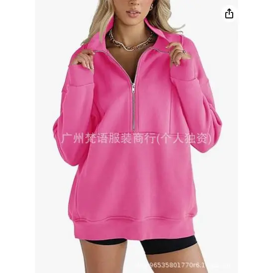 2025WOMEN'S half zip sweatshirt fleece stand collar long sleeve thumb hole oversized pullovers with pockets