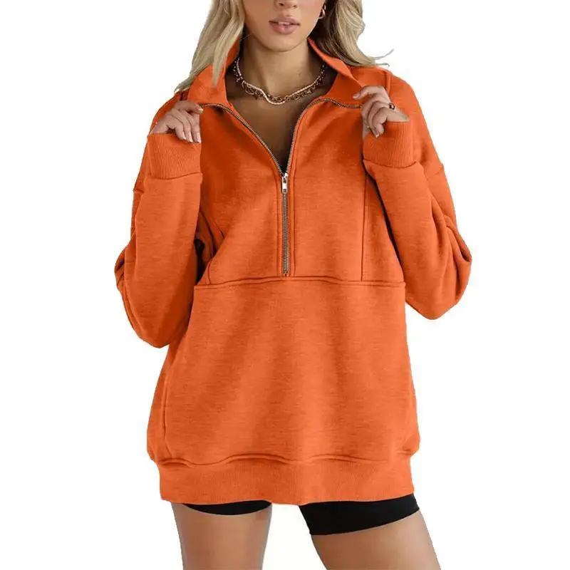 Comfy material: Soft and cozy brushed fleece inside, providing exceptional warmth and comfort on chilly days. Zip up sweatshirts: The stand collar with 1/2 zipper on these pullovers not only adds a stylish touch to your outfit, but also offers extra protection against the cold wind, keeping you snug and cozy. Warm fall clothing for women: Long sleeves with thumb hole on cuff not only elevate the overall look of the pullovers, but also provide added warmth. Casual sweatshirts: With a solid color design, these oversized sweatshirts are versatile and can be easily paired with any outfit. Washing instructions: Machine Wash Cold. Hand Wash Recommend. Do Not Bleach. Do Not Iron. Do Not Dry Clean. Long sleeve sweatshirts came with 12 colors Fabric Type 57% cotton, 43% polyester Easy To Match with Pants ,Jeans, Joggers, Sweatpants; Loose fitted style and You Can Match Anything You Like Inside, Like Underscrub Shirts, Tank Top, Crop Top, Vest Etc
