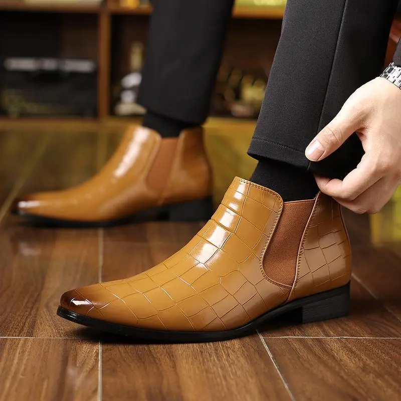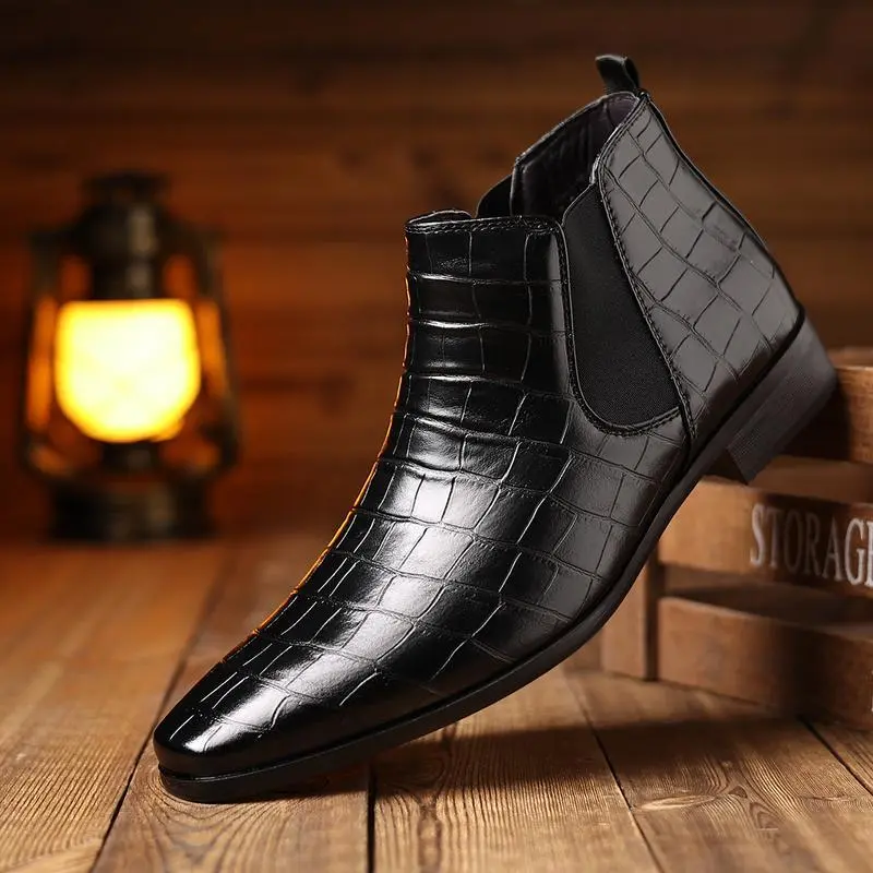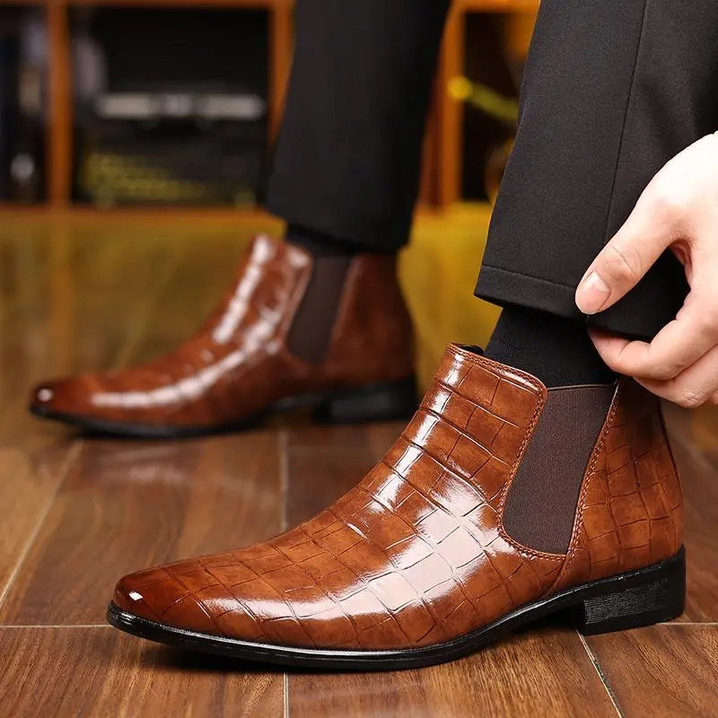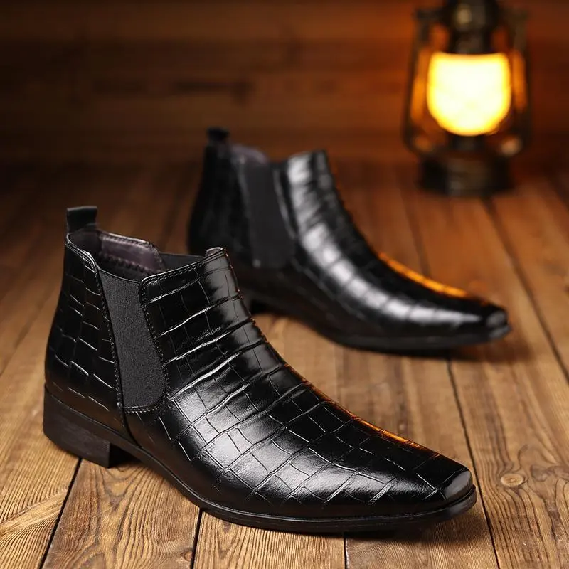 These boots feature a croc-embossed PU upper, ideal for work, business, dates, and events. The slip-on elastic gore ensures quick entry and a secure fit. Perfect for gifting, these boots combine style with practicality. ?? These boots are great for work, business, dates, and events. They are gift-ready and offer both style and practicality. Choose these boots for your next occasion. ??