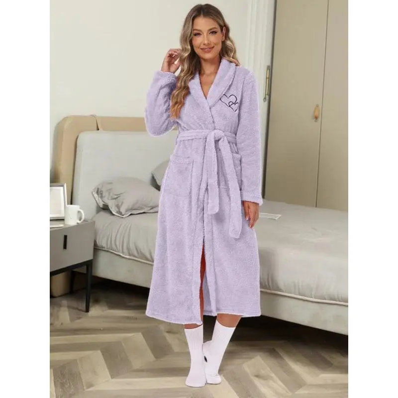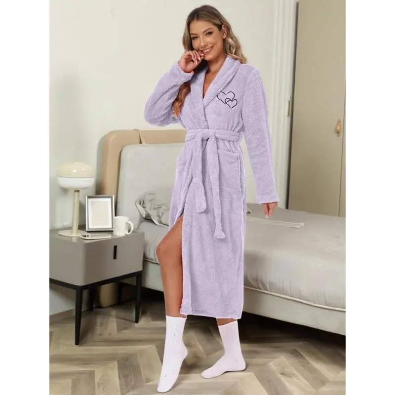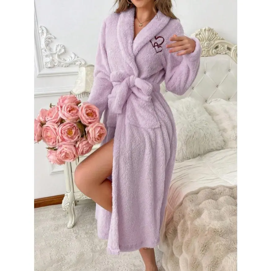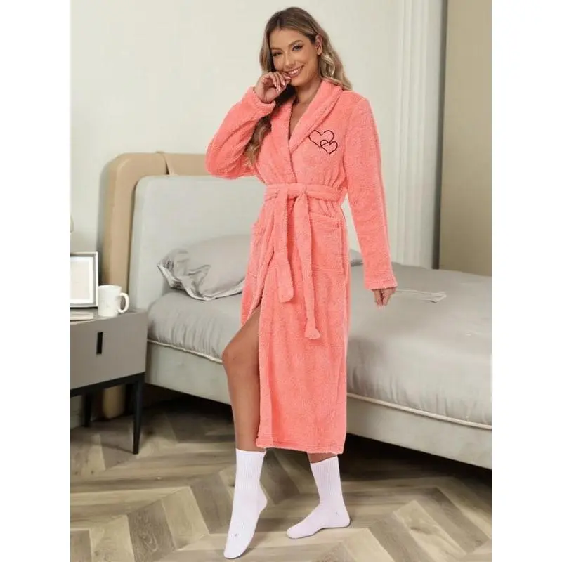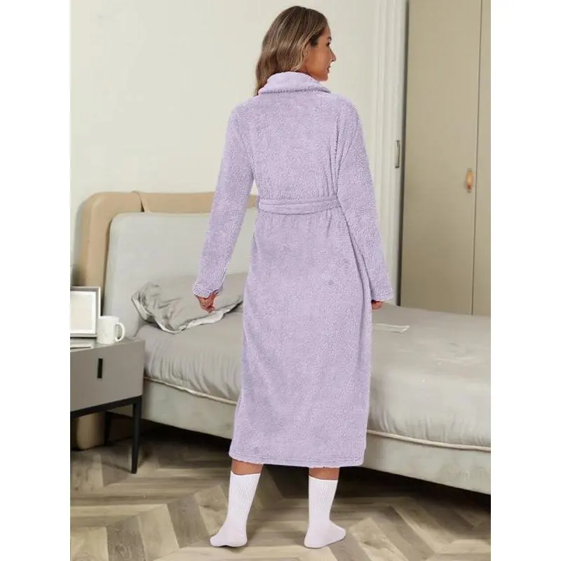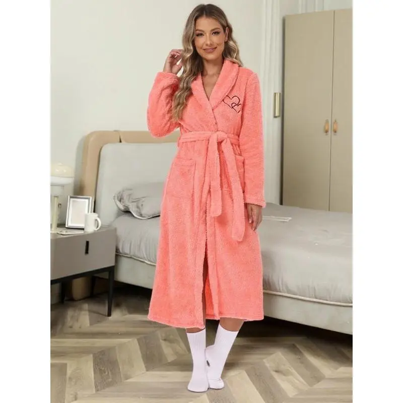 Women'sLongCoralFleeceRobe,FallWinterPlushBathrobe,WarmHomeWear,ThickenedDouble-SidedVelvetSleepwear