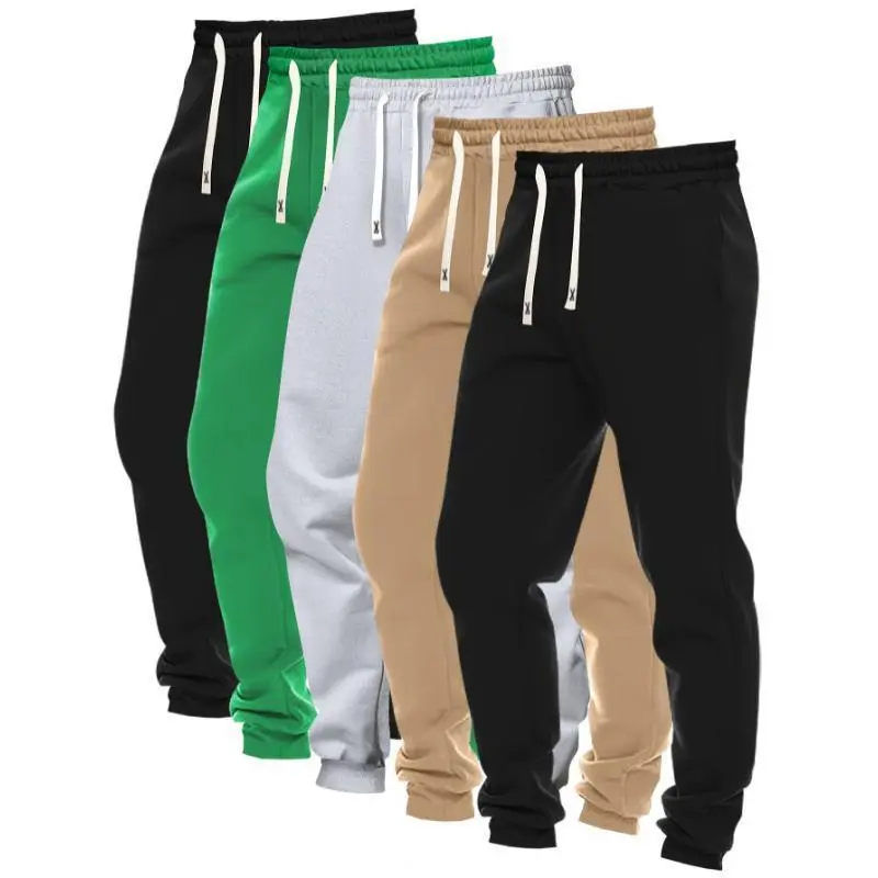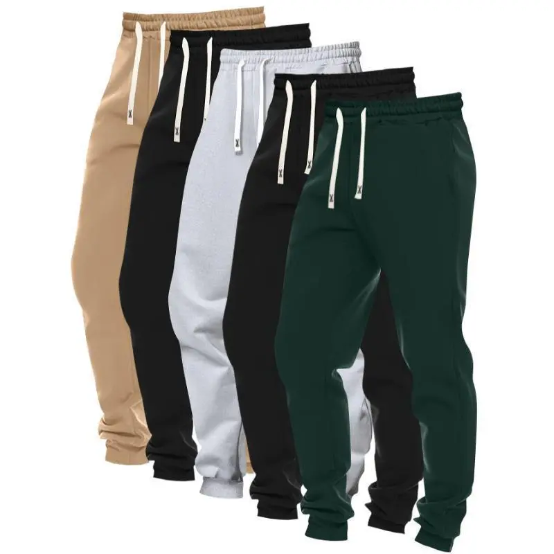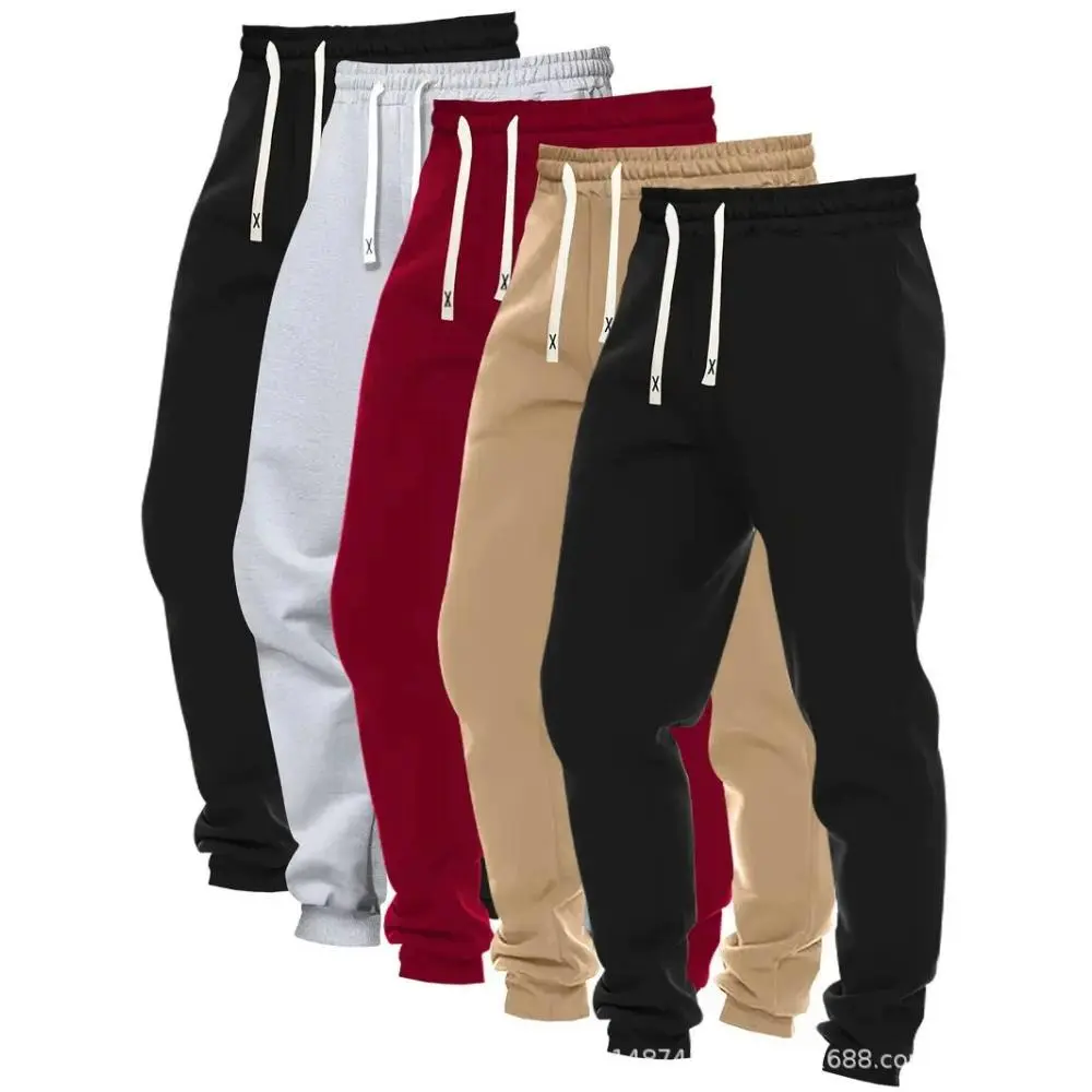 5pcs Set Of Men's Solid Color Regular Fit And Cuffed Sweatpants With Drawstring Pockets, Casual Trousers Suitable For Jogging Outdoors Sports Wear