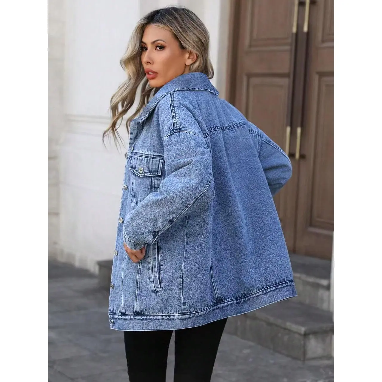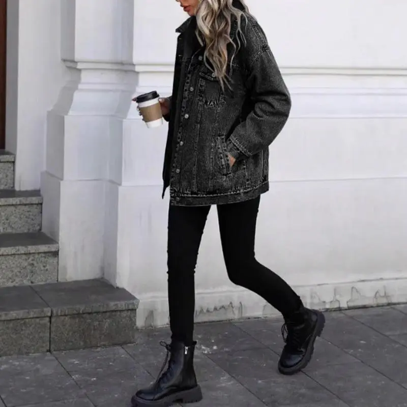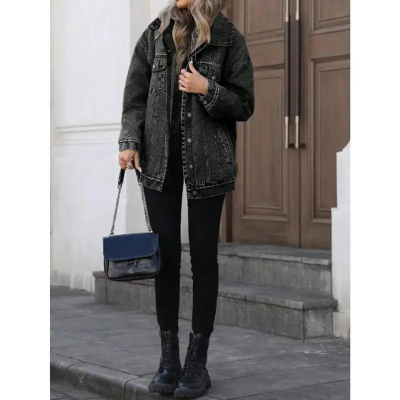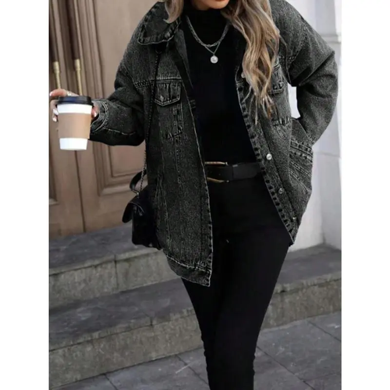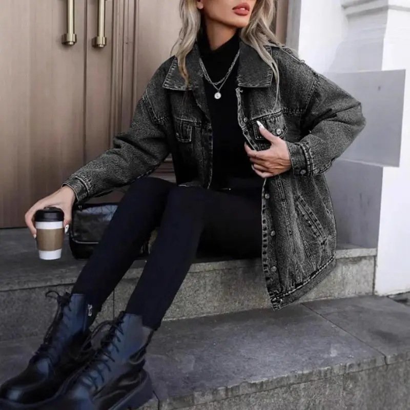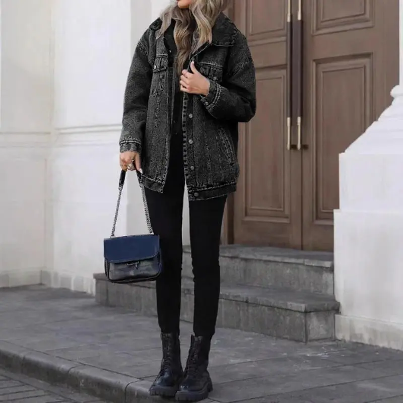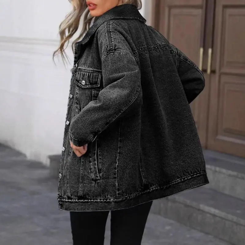 RetroDenimJacketWomen'sFashionableLooseFitCottonOuterwearClassicStyleCasualElegantCoatforLadies