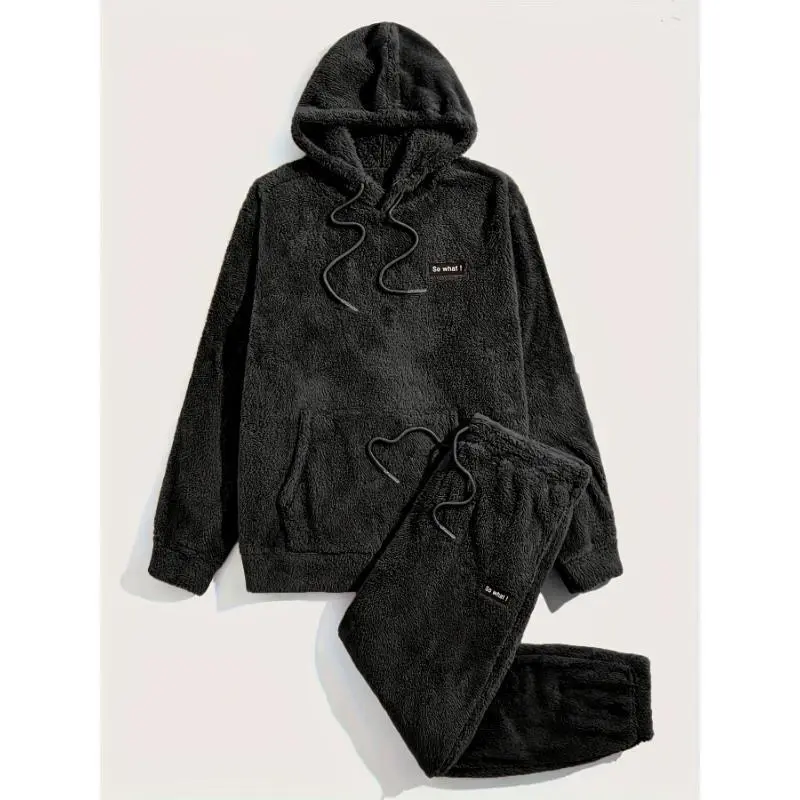 2-Piece Fluffy Men's Outfit Set: Casual Hooded Sweatshirt & Sweatpants Joggers for Winter Fall - Long Sleeve Pullover Clothes Fabricwomen's clothing