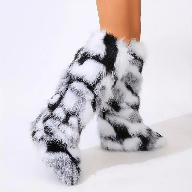 New Women'S Plus-Size Knee-High Outdoor Snow Boots with Long Fur for Warmth. Platform Girl Black