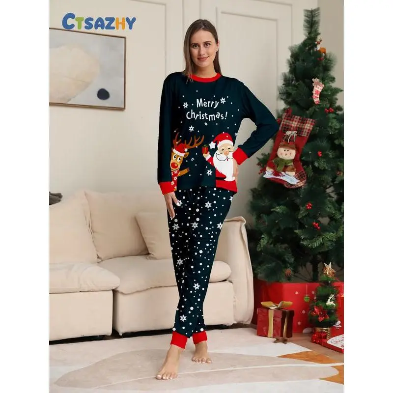 【Festive Pattern】: Features a cheerful Christmas snowman print on the top, enhancing the holiday spirit during winter nights. 【Matching Set】: Includes both a printed top and plaid pants, perfect for couples who enjoy coordinating their holiday attire. 【Soft Fabric】: Made from thin knit fabric, providing a lightweight option for relaxed lounging at home during the autumn and winter seasons. 【Fitted Design】: Tailored fit ensures the outfit remains close to the body, providing a snug feel without compromising on mobility. 【Seasonal Use】: Crafted specifically for fall and winter, making it suitable for cozy evenings and holiday-themed gatherings.
