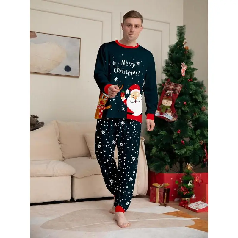 Limited Edition Christmas Couple Pajamas Set, Santa Reindeer Print, Casual Fall Winter Home Wear, Comfortable Daily Sleepwear
